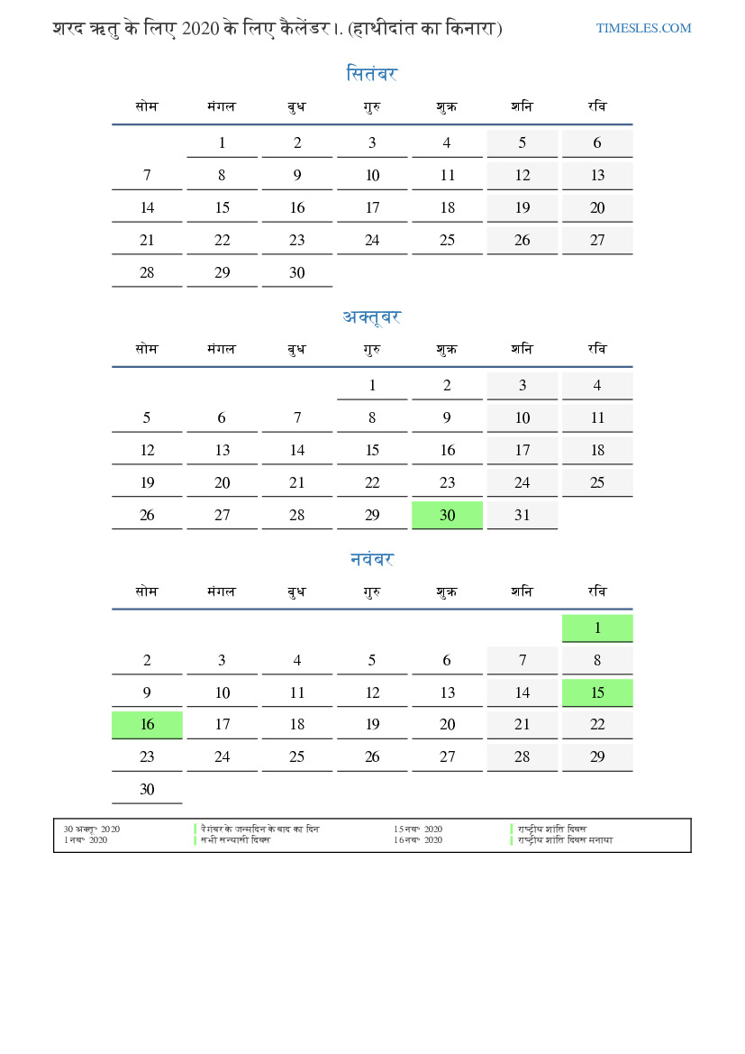 कोटे डी आइवर के लिए 2020 की शरद ऋतु के लिए छुट्टियों और सप्ताहांत के साथ पीडीएफ कैलेंडर डाउनलोड और प्रिंट करें
