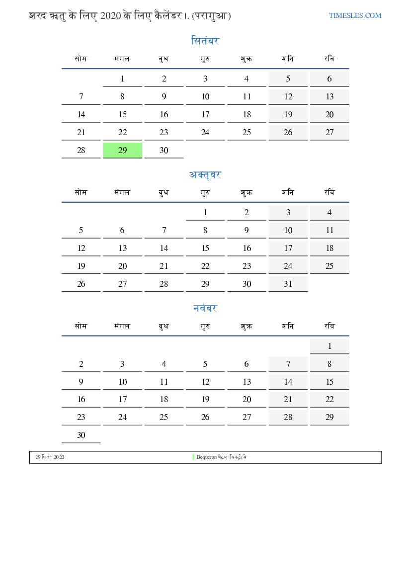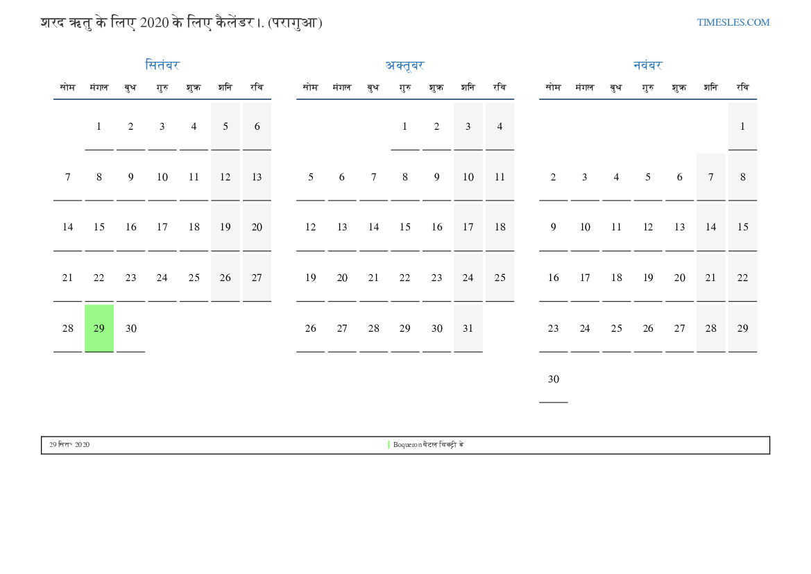 शरद ऋतु के लिए कैलेंडर 2020 पराग्वे के लिए