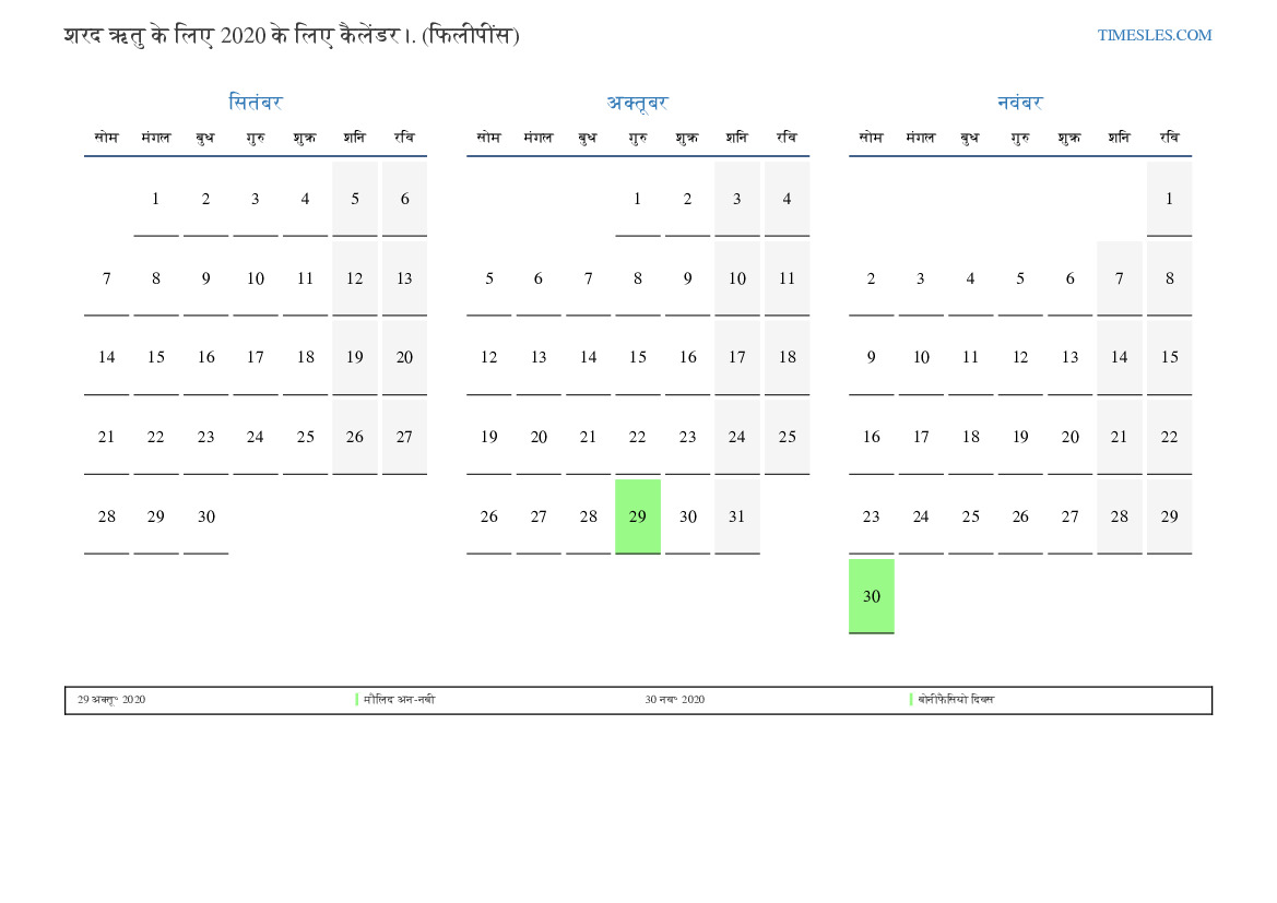शरद ऋतु के लिए कैलेंडर 2020 फिलीपींस के लिए