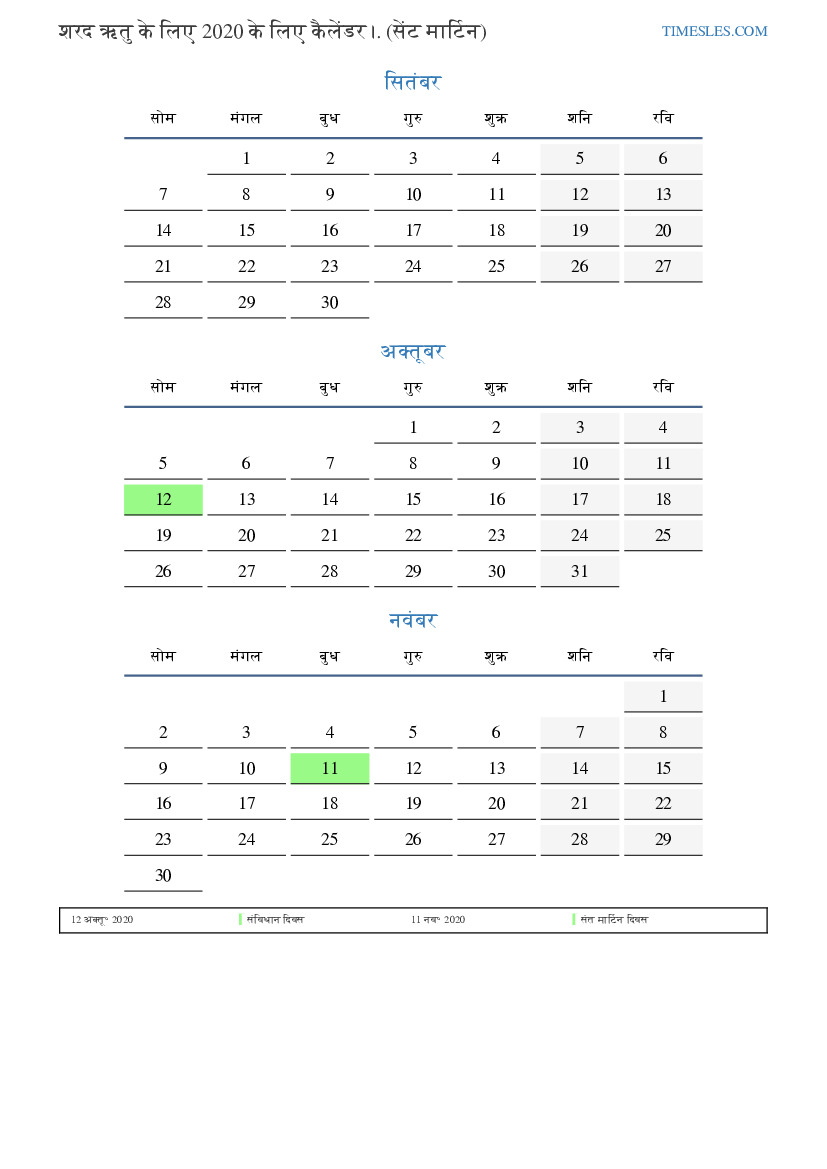 शरद ऋतु के लिए कैलेंडर 2020 सिंट मार्टेन के लिए