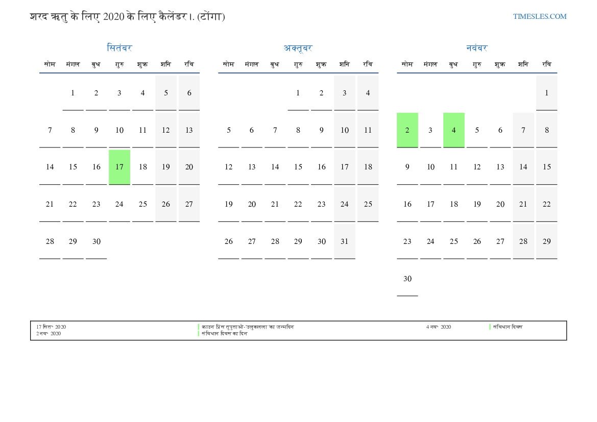 शरद ऋतु के लिए कैलेंडर 2020 टोंगा के लिए