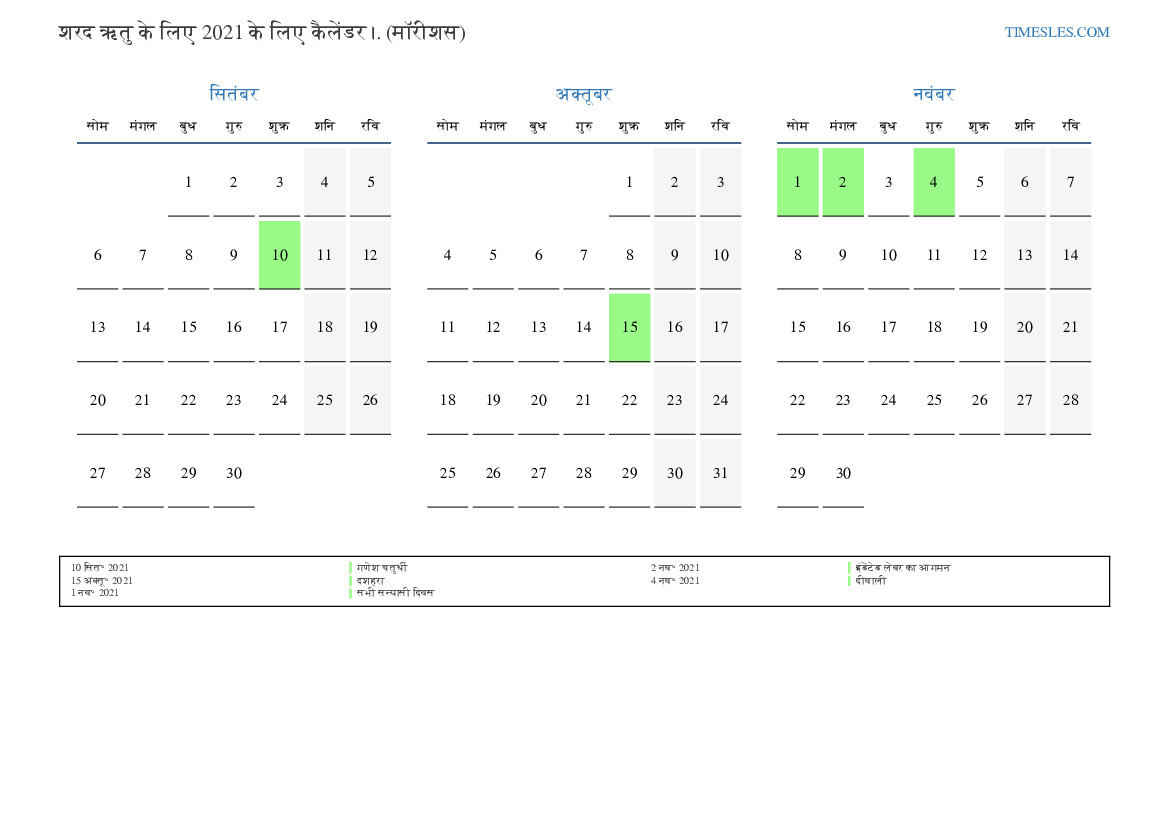 मॉरीशस के लिए 2021 की शरद ऋतु के लिए छुट्टियों और सप्ताहांत के साथ पीडीएफ कैलेंडर डाउनलोड और प्रिंट करें