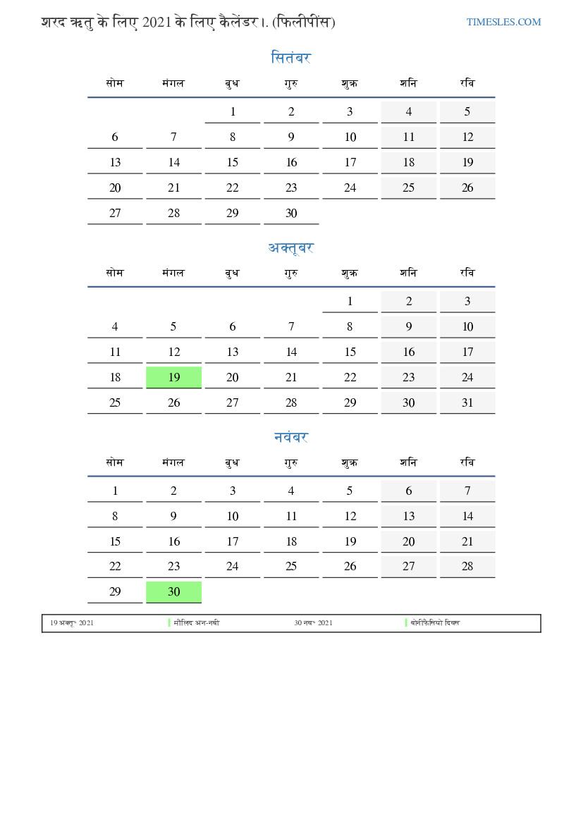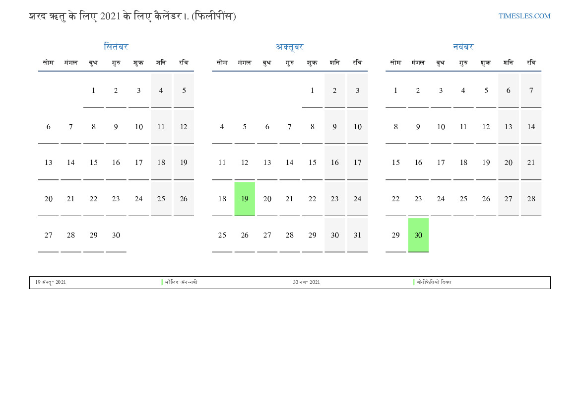 शरद ऋतु के लिए कैलेंडर 2021 फिलीपींस के लिए