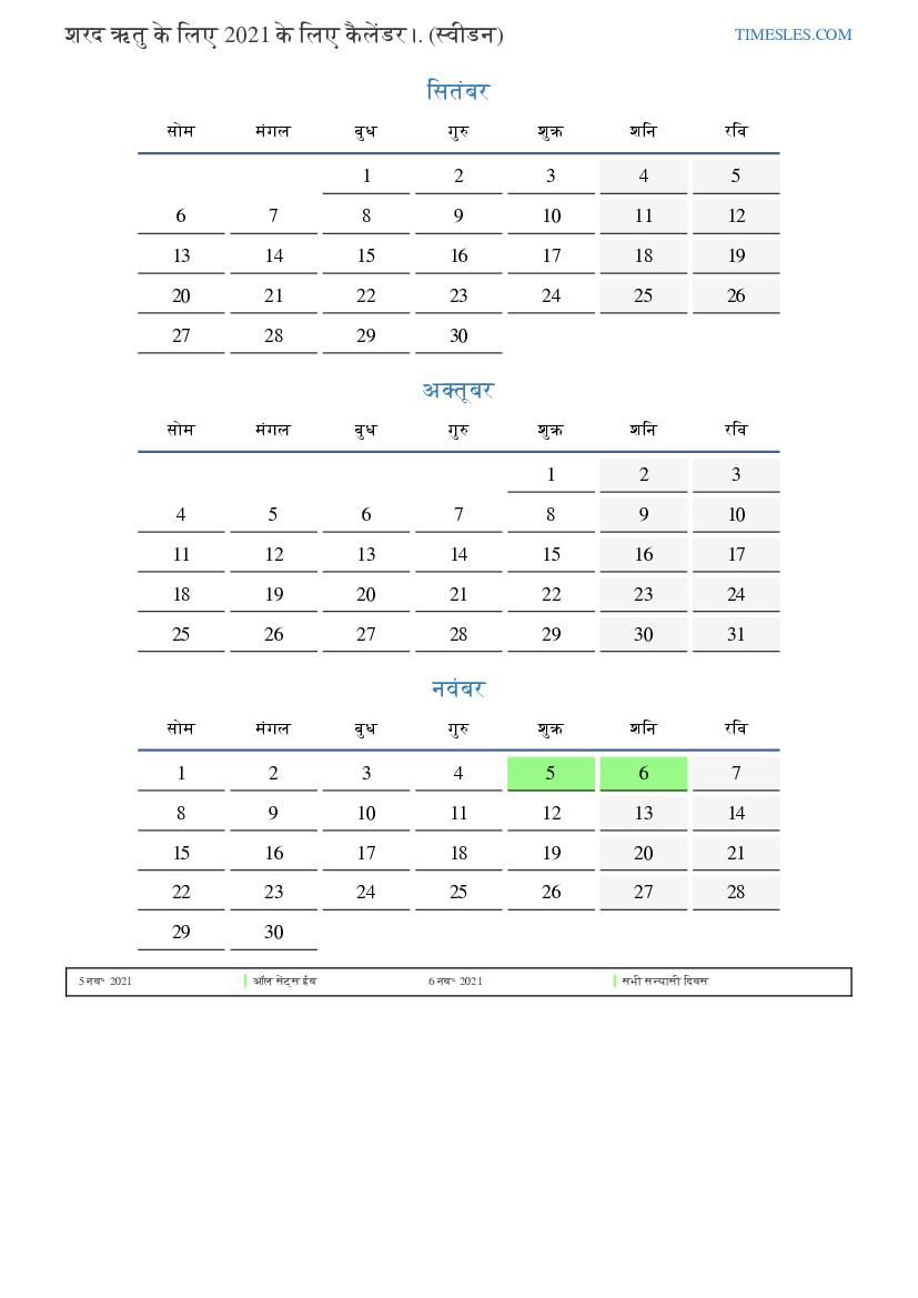 स्वीडन के लिए 2021 की शरद ऋतु के लिए छुट्टियों और सप्ताहांत के साथ पीडीएफ कैलेंडर डाउनलोड और प्रिंट करें