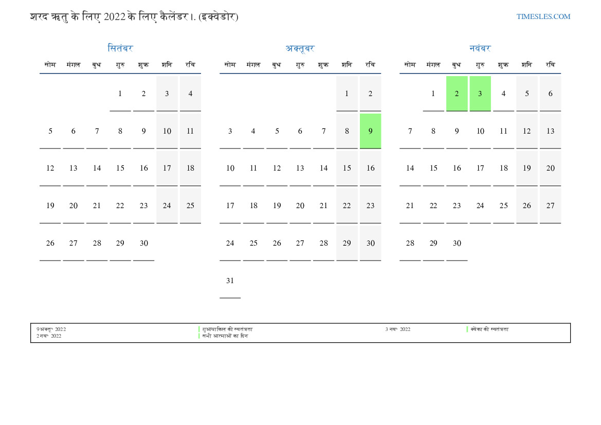 शरद ऋतु के लिए कैलेंडर 2022 इक्वाडोर के लिए