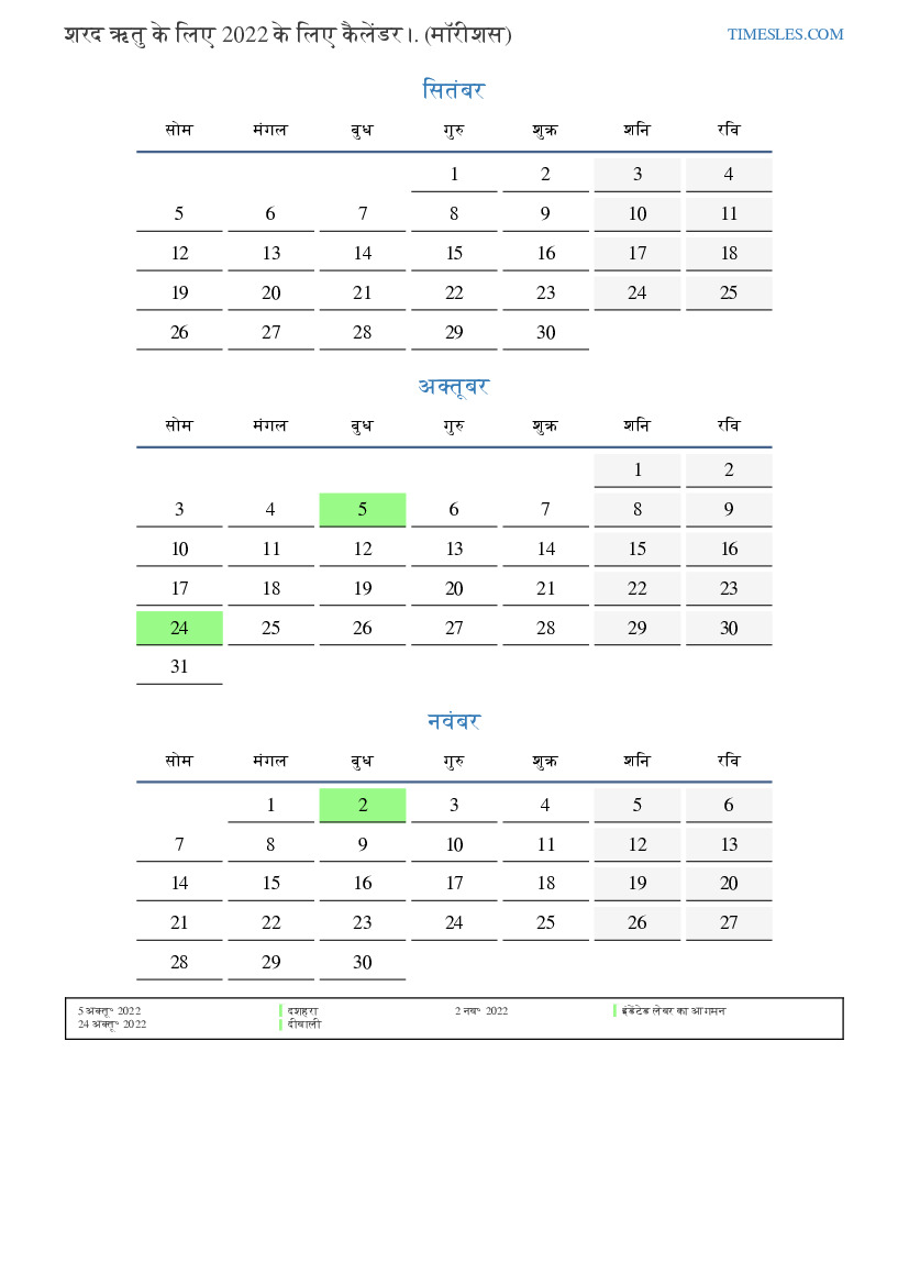 मॉरीशस के लिए 2022 की शरद ऋतु के लिए छुट्टियों और सप्ताहांत के साथ पीडीएफ कैलेंडर डाउनलोड और प्रिंट करें