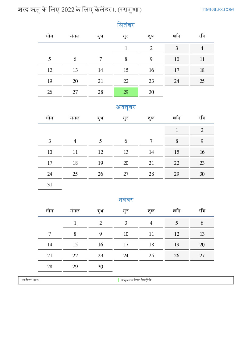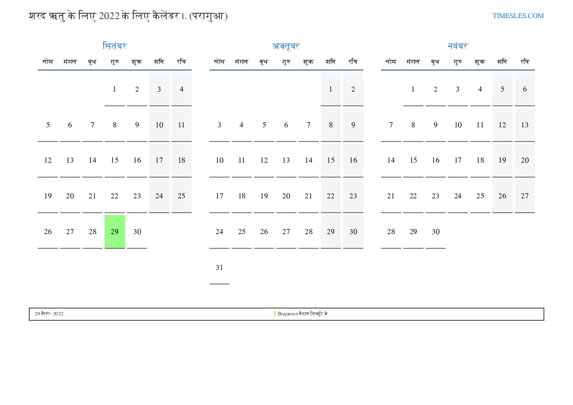 शरद ऋतु के लिए कैलेंडर 2022 पराग्वे के लिए