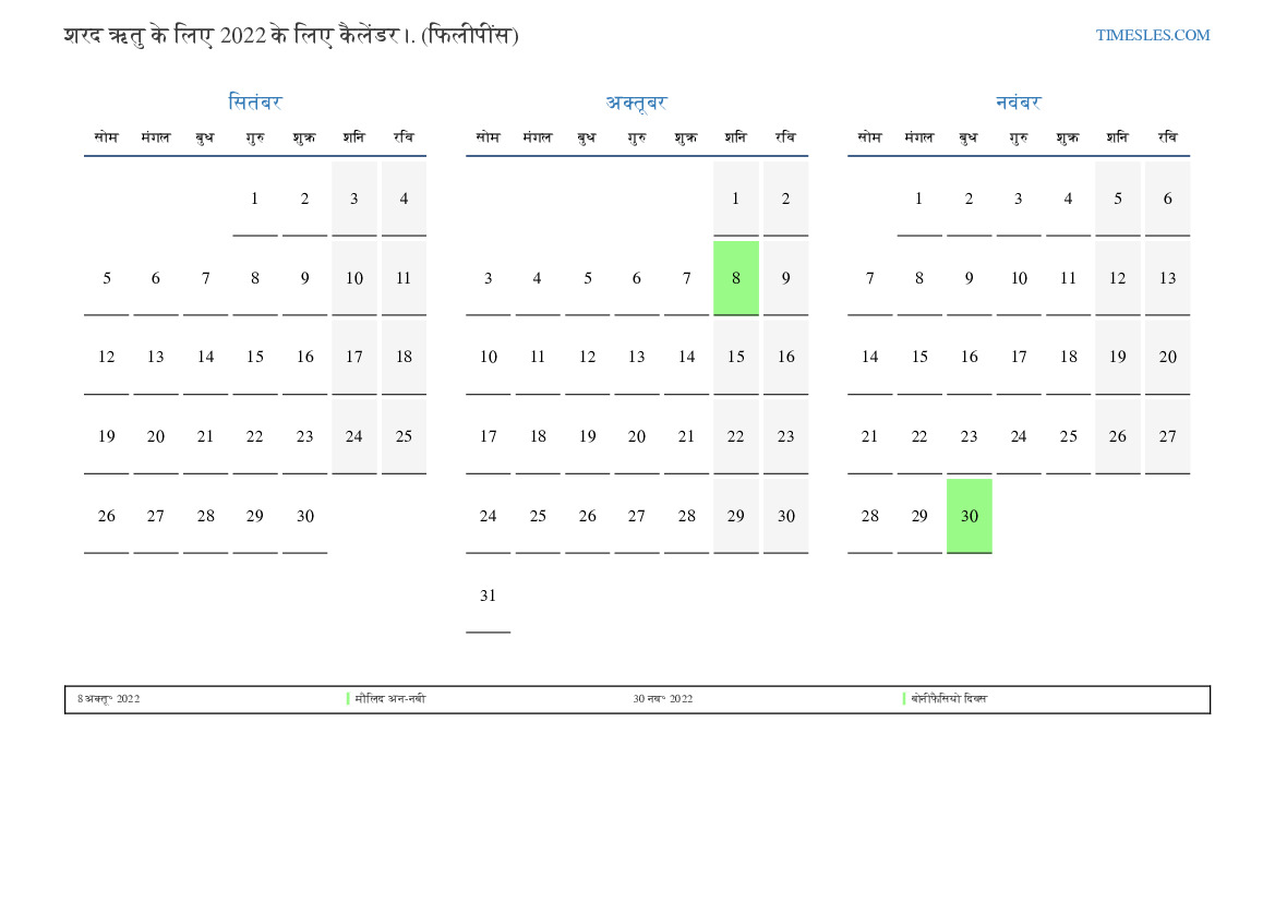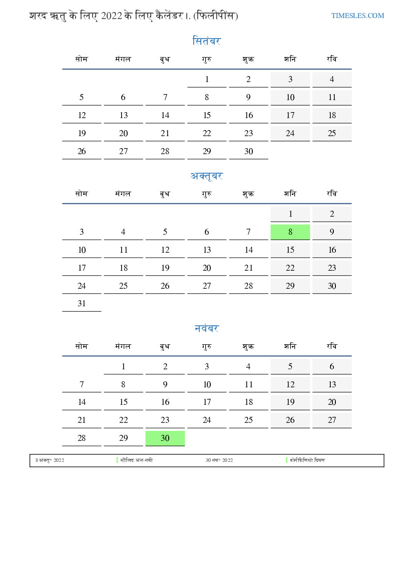शरद ऋतु के लिए कैलेंडर 2022 फिलीपींस के लिए