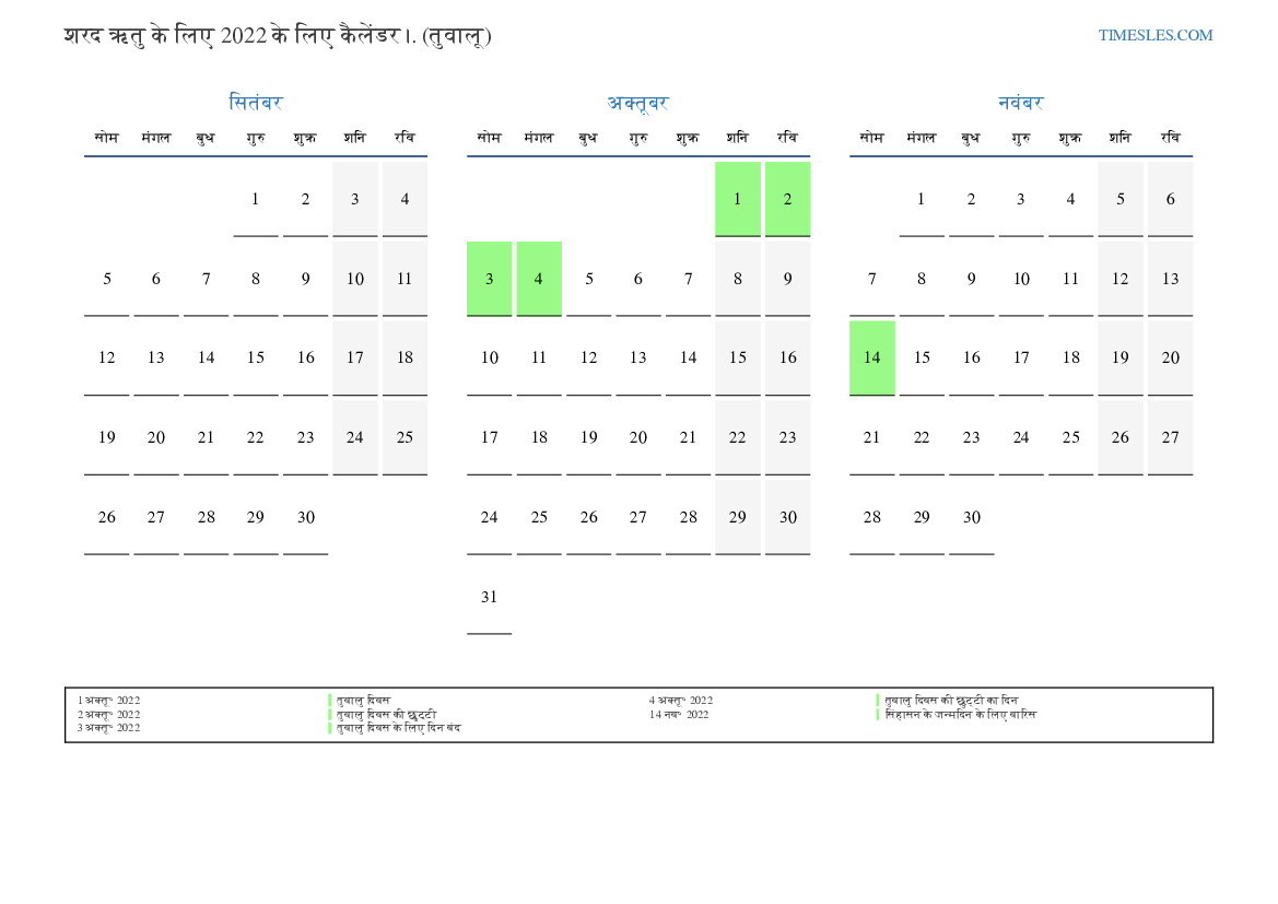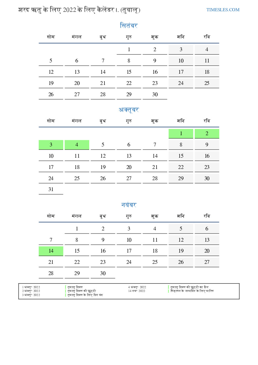 तुवालु के लिए 2022 की शरद ऋतु के लिए छुट्टियों और सप्ताहांत के साथ पीडीएफ कैलेंडर डाउनलोड और प्रिंट करें