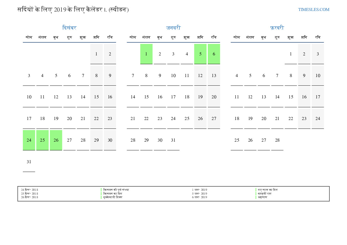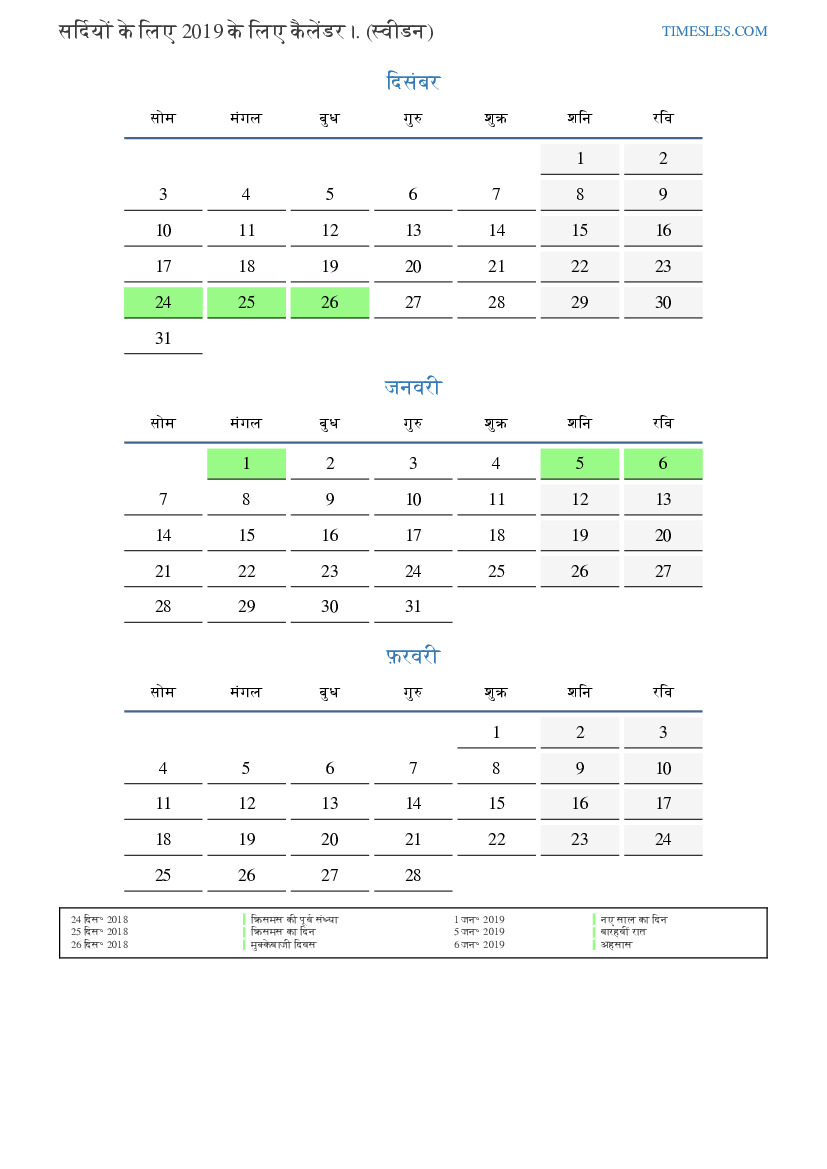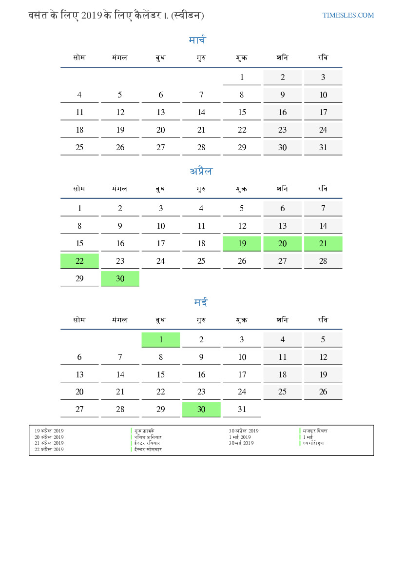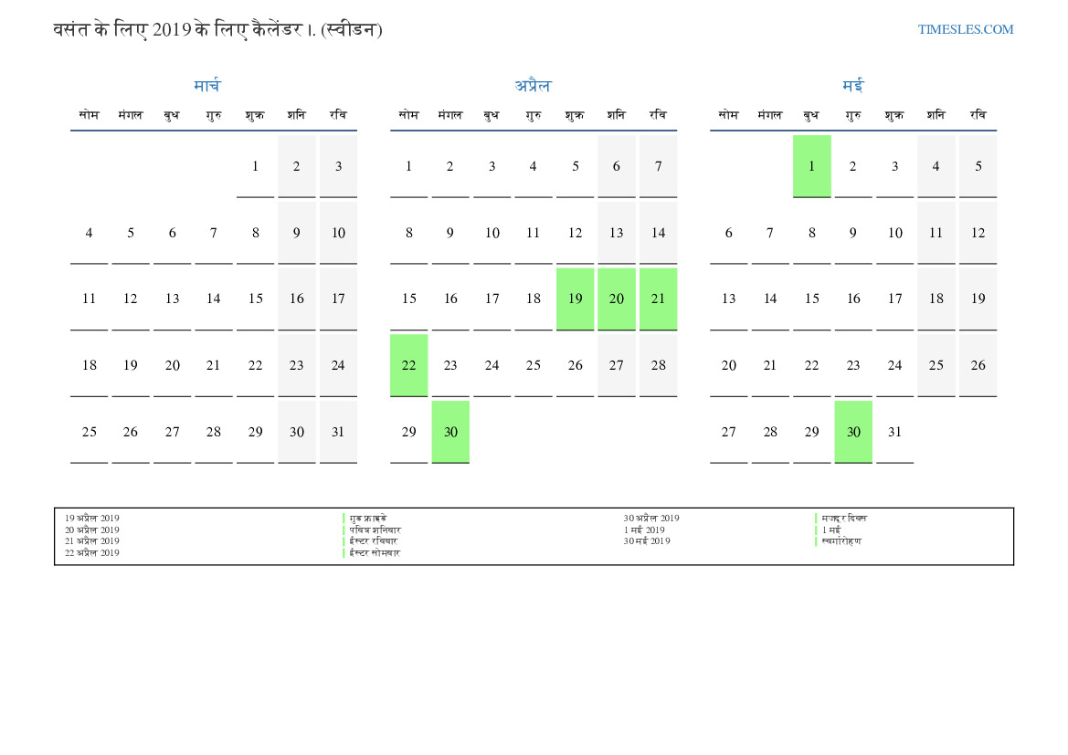 वसंत के लिए कैलेंडर 2019 स्वीडन के लिए