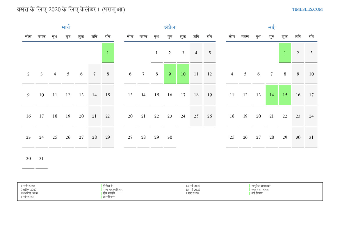 वसंत के लिए कैलेंडर 2020 पराग्वे के लिए