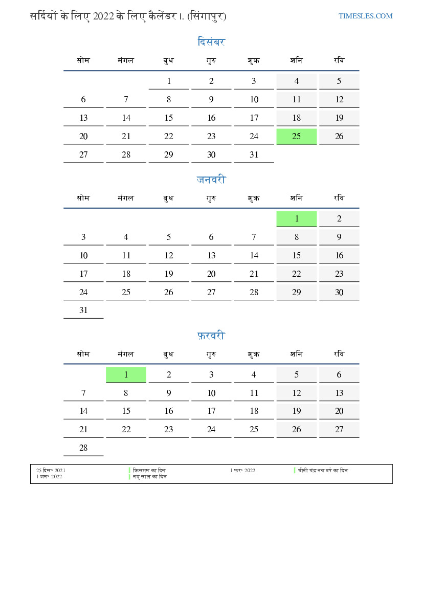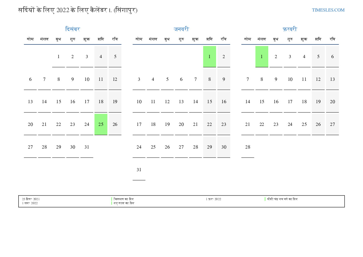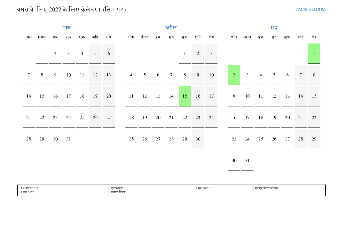 वसंत के लिए कैलेंडर 2022 सिंगापुर के लिए