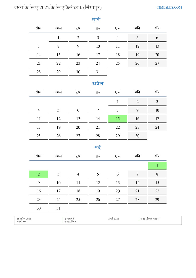 सिंगापुर के लिए 2022 की वसंत के लिए छुट्टियों और सप्ताहांत के साथ पीडीएफ कैलेंडर डाउनलोड और प्रिंट करें