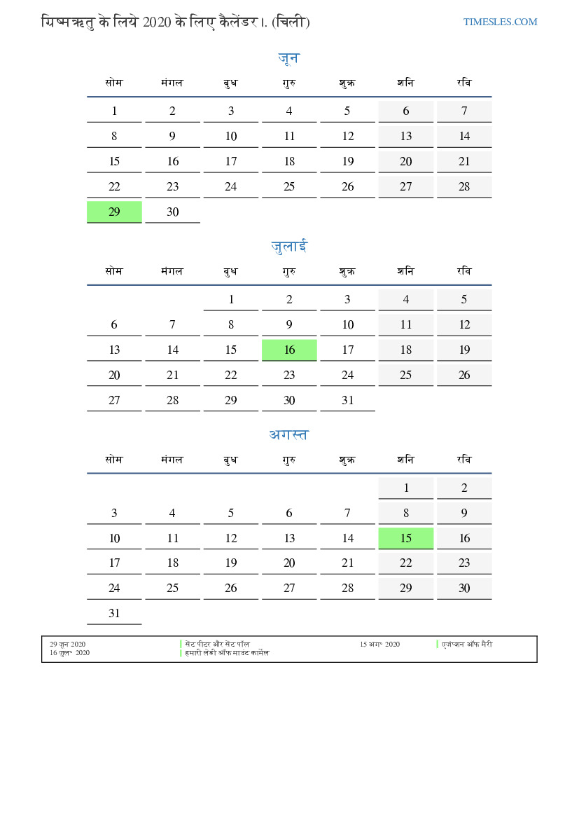 चिली के लिए 2020 की ग्रिष्मऋतु के लिये छुट्टियों और सप्ताहांत के साथ पीडीएफ कैलेंडर डाउनलोड और प्रिंट करें