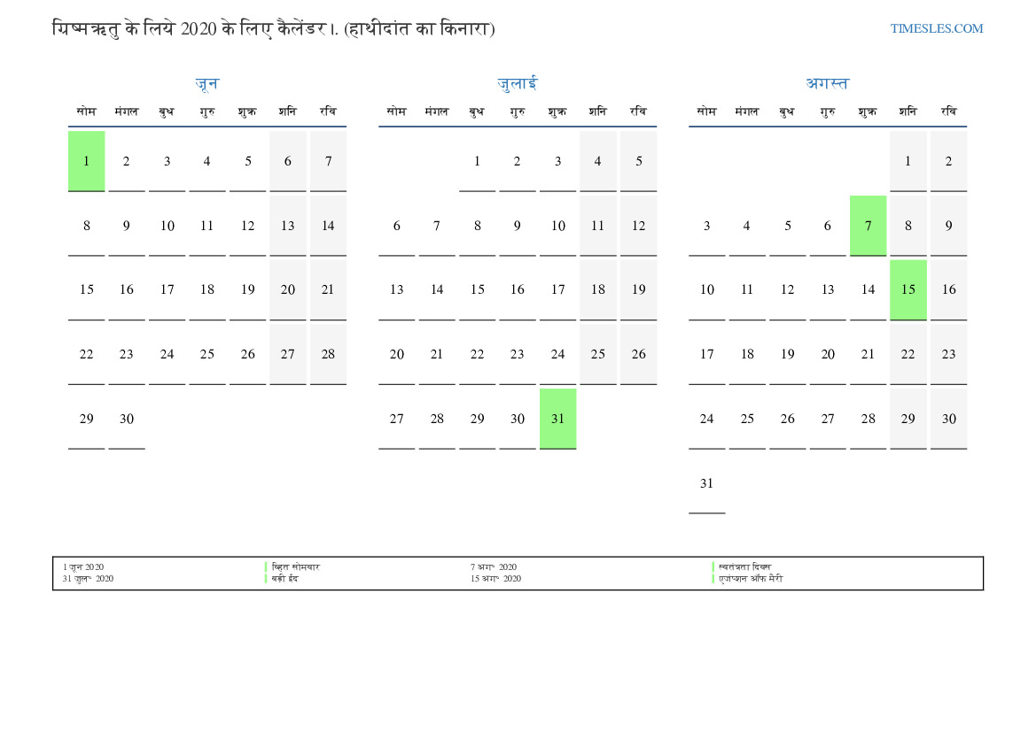 कोटे डी आइवर के लिए 2020 की ग्रिष्मऋतु के लिये छुट्टियों और सप्ताहांत के साथ पीडीएफ कैलेंडर डाउनलोड और प्रिंट करें