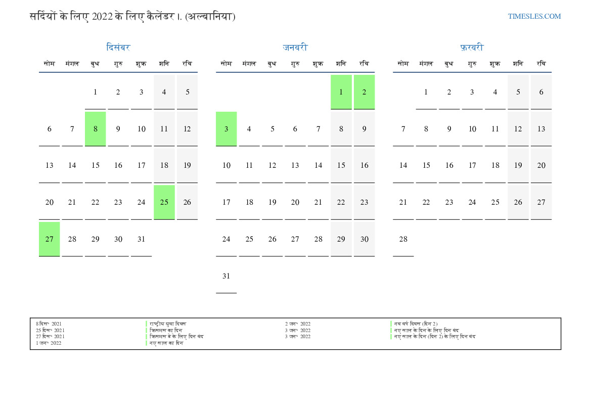 छुट्टियों के बिना पोर्ट्रेट कैलेंडर