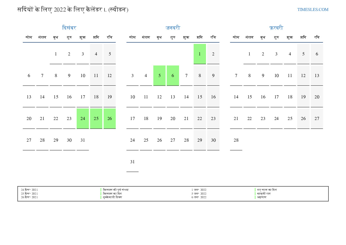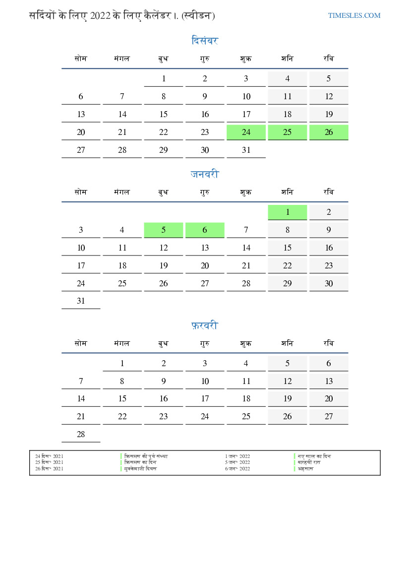 स्वीडन के लिए 2022 की ग्रिष्मऋतु के लिये छुट्टियों और सप्ताहांत का कैलेंडर