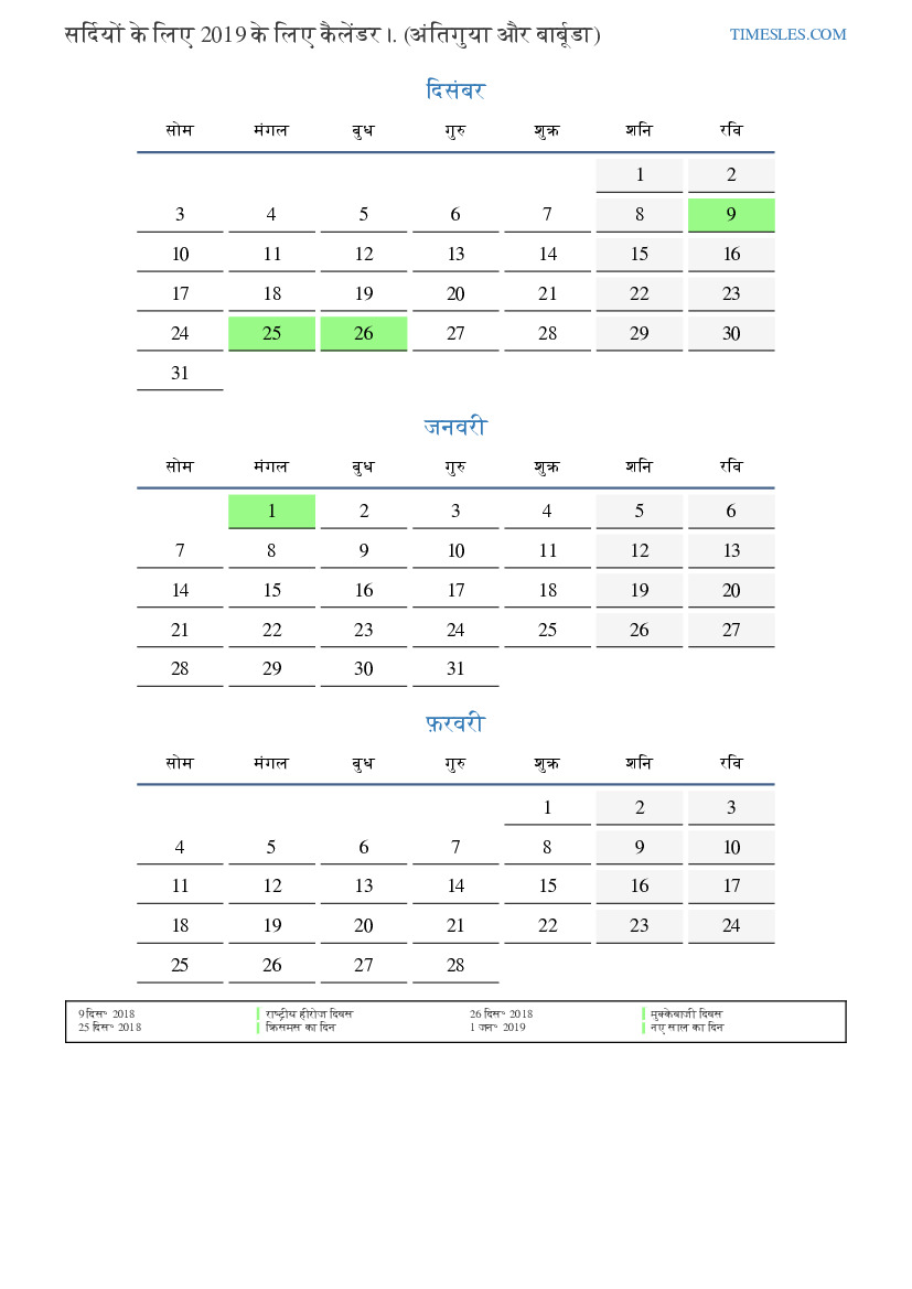 एंटीगुआ और बारबुडा के लिए 2019 की सर्दियों के लिए छुट्टियों और सप्ताहांत के साथ पीडीएफ कैलेंडर डाउनलोड और प्रिंट करें