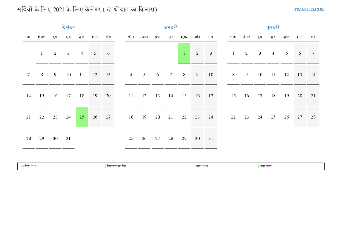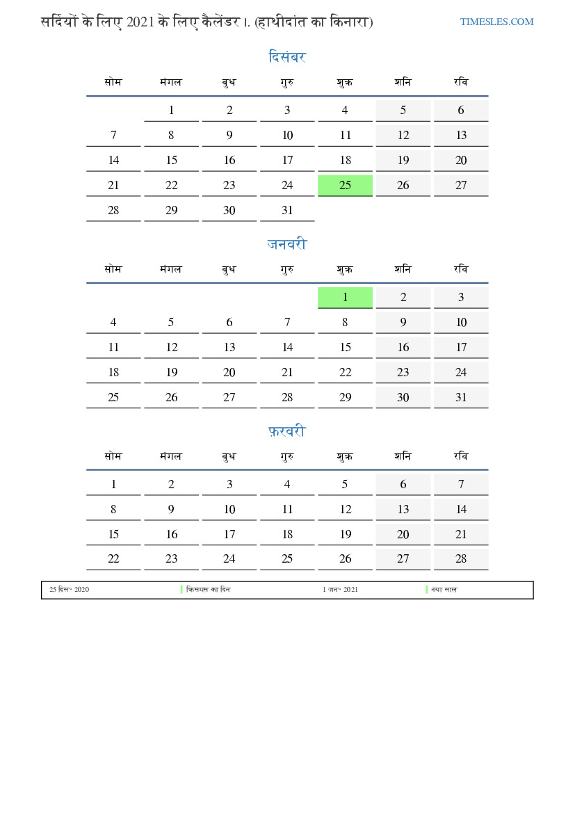 कोटे डी आइवर के लिए 2021 की सर्दियों के लिए छुट्टियों और सप्ताहांत के साथ पीडीएफ कैलेंडर डाउनलोड और प्रिंट करें