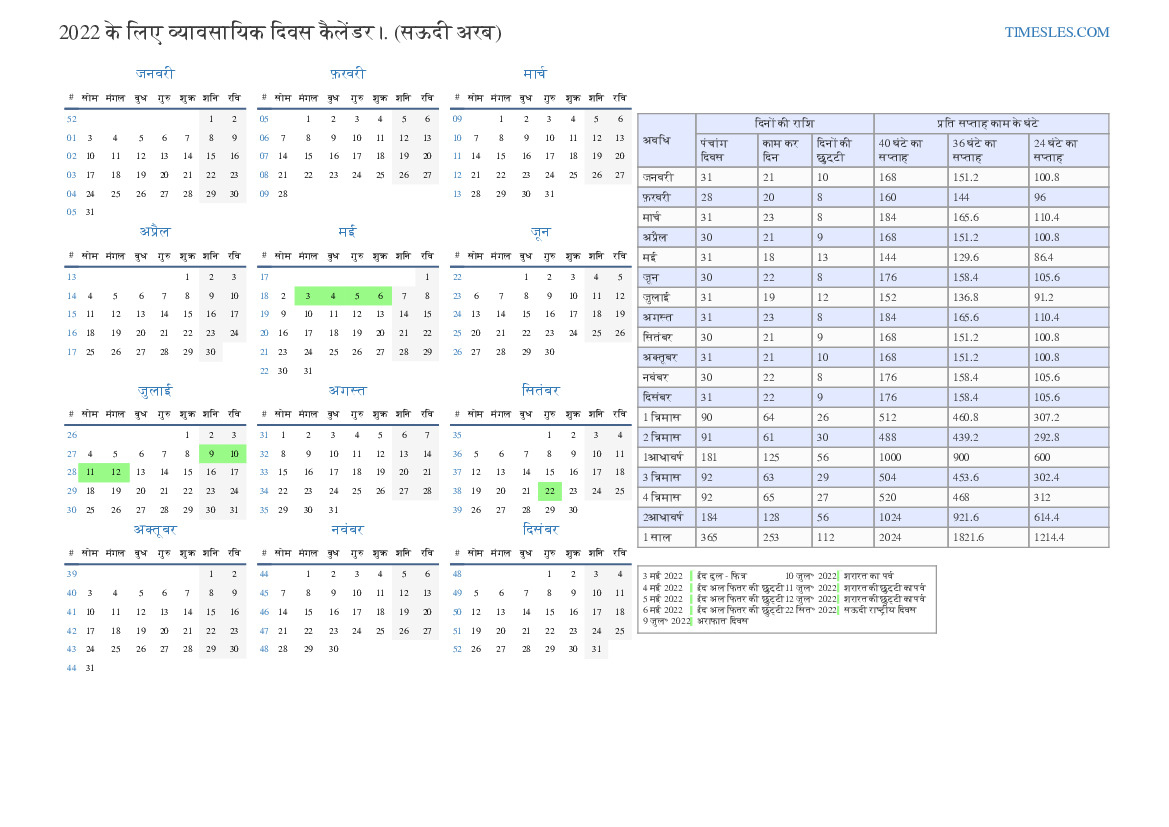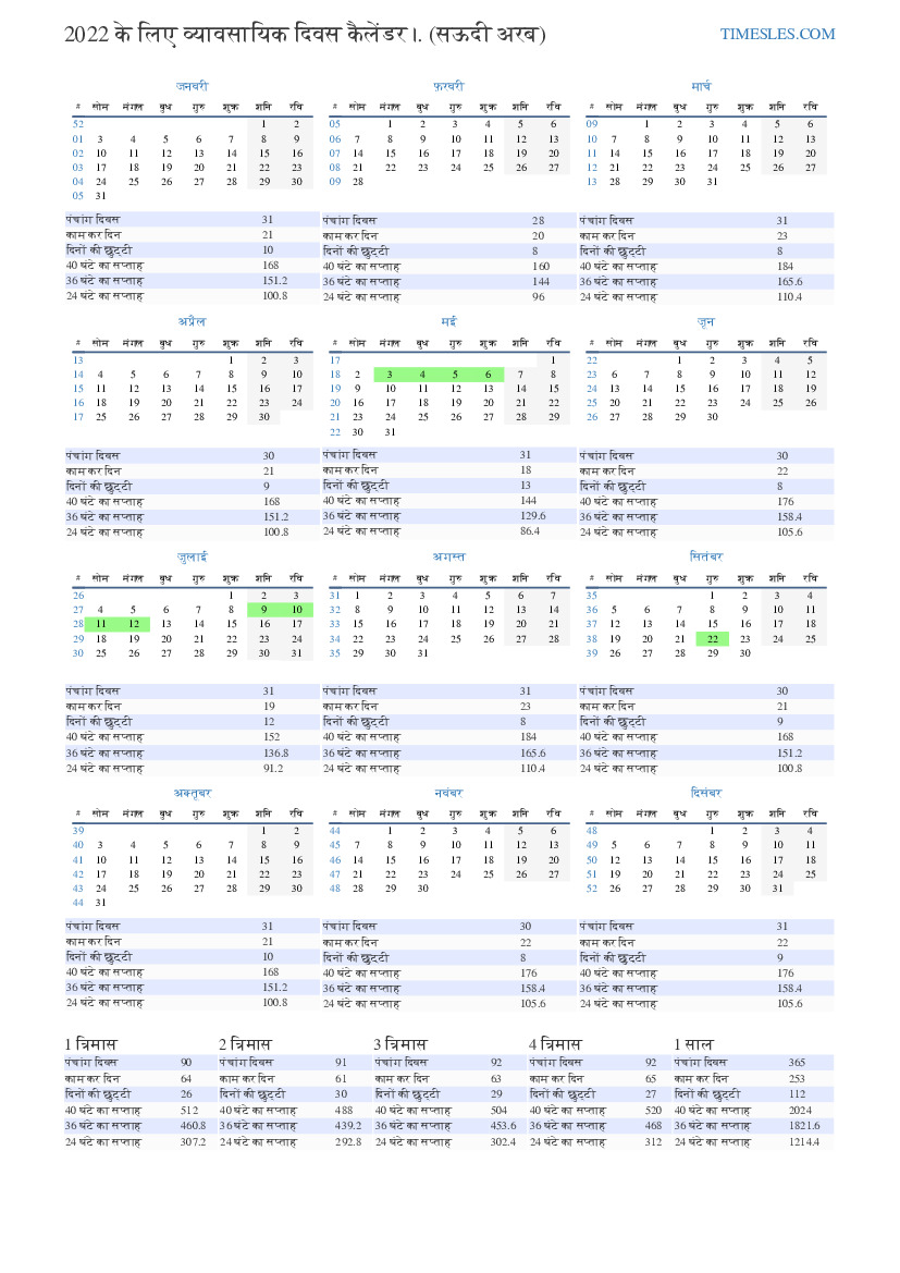 सऊदी अरब के लिए नवंबर 2022 के लिए कार्य दिवस
