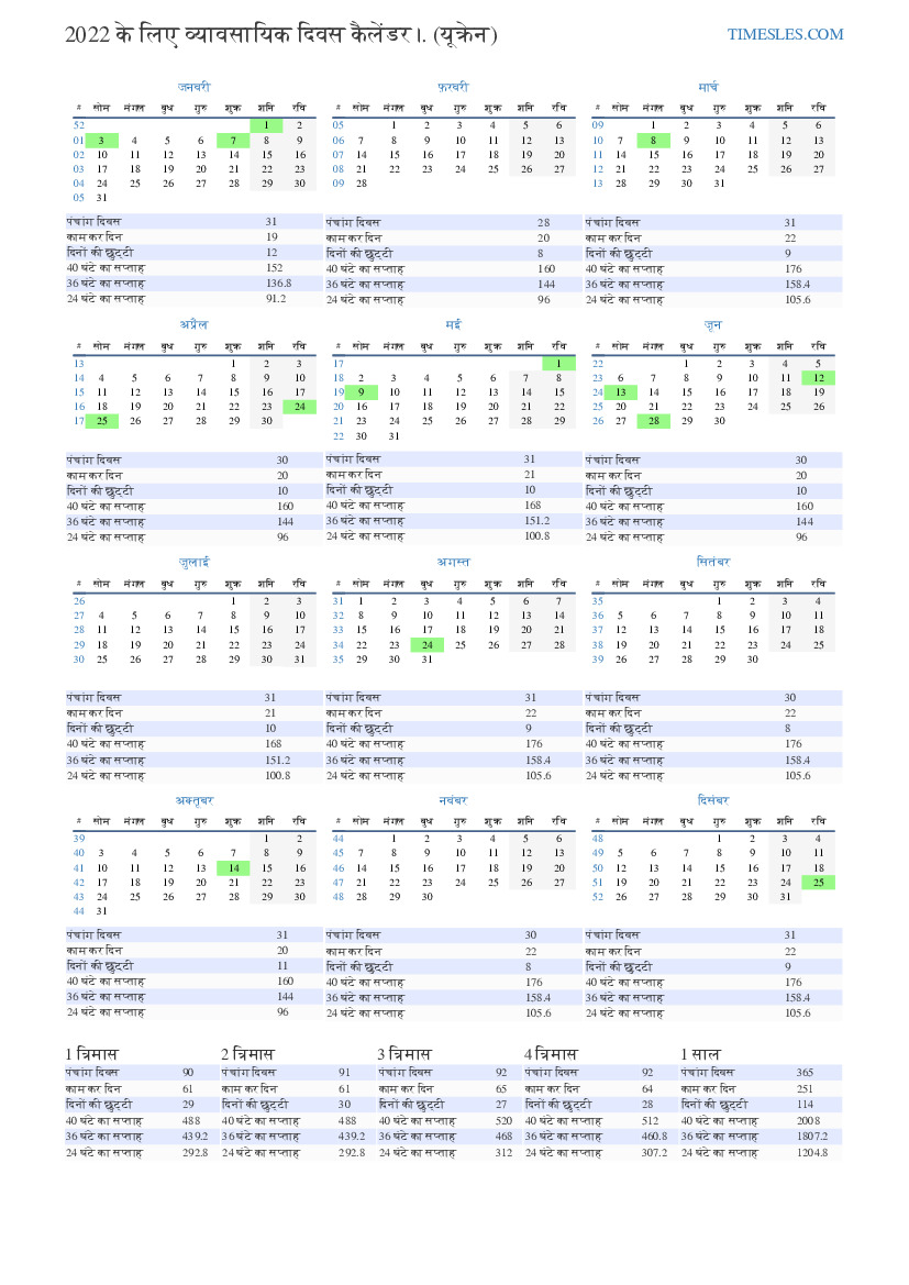 यूक्रेन के लिए दिसंबर 2022 के लिए कार्य दिवस