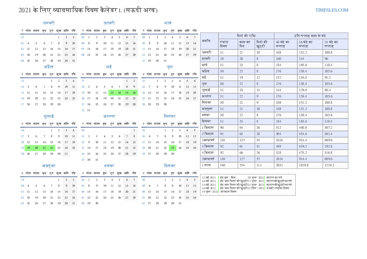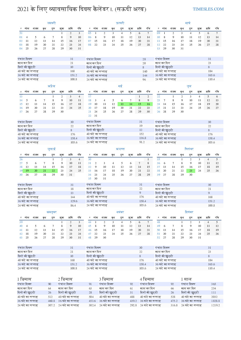 | काम कर दिन | 21 |