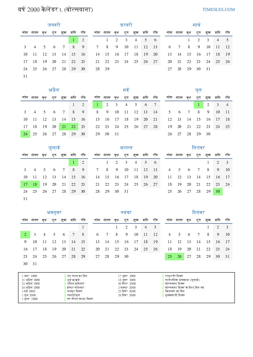 2 अक्तू॰ 2000 बोत्सवाना दिवस के लिए दिन बंद