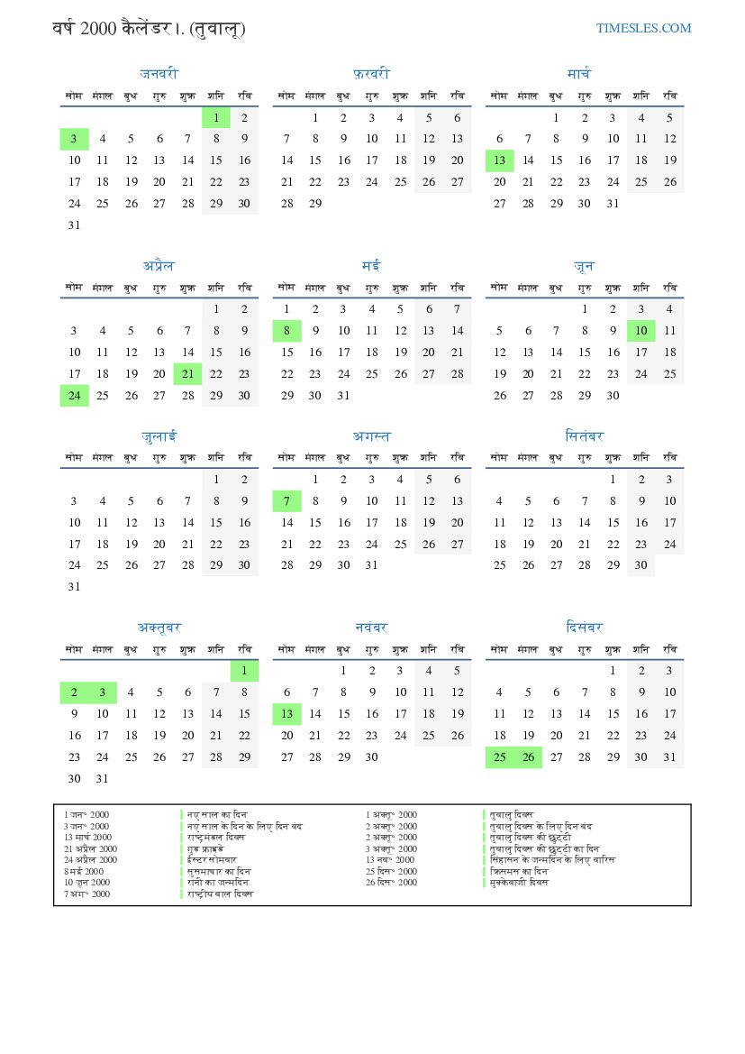3 अक्तू॰ 2000 तुवालु दिवस की छुट्टी का दिन