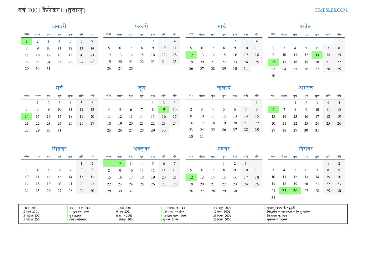 2 अक्तू॰ 2001 तुवालु दिवस की छुट्टी