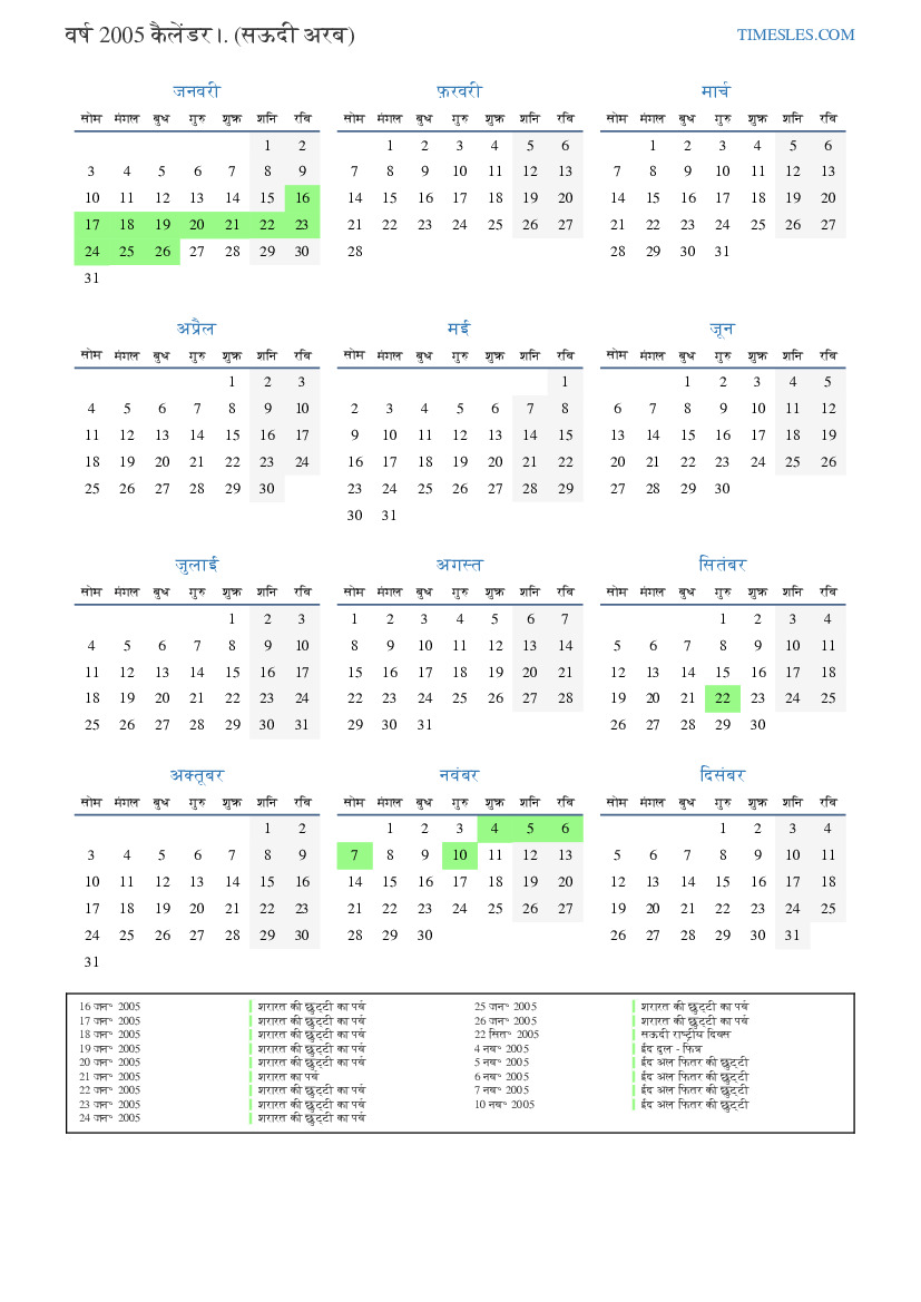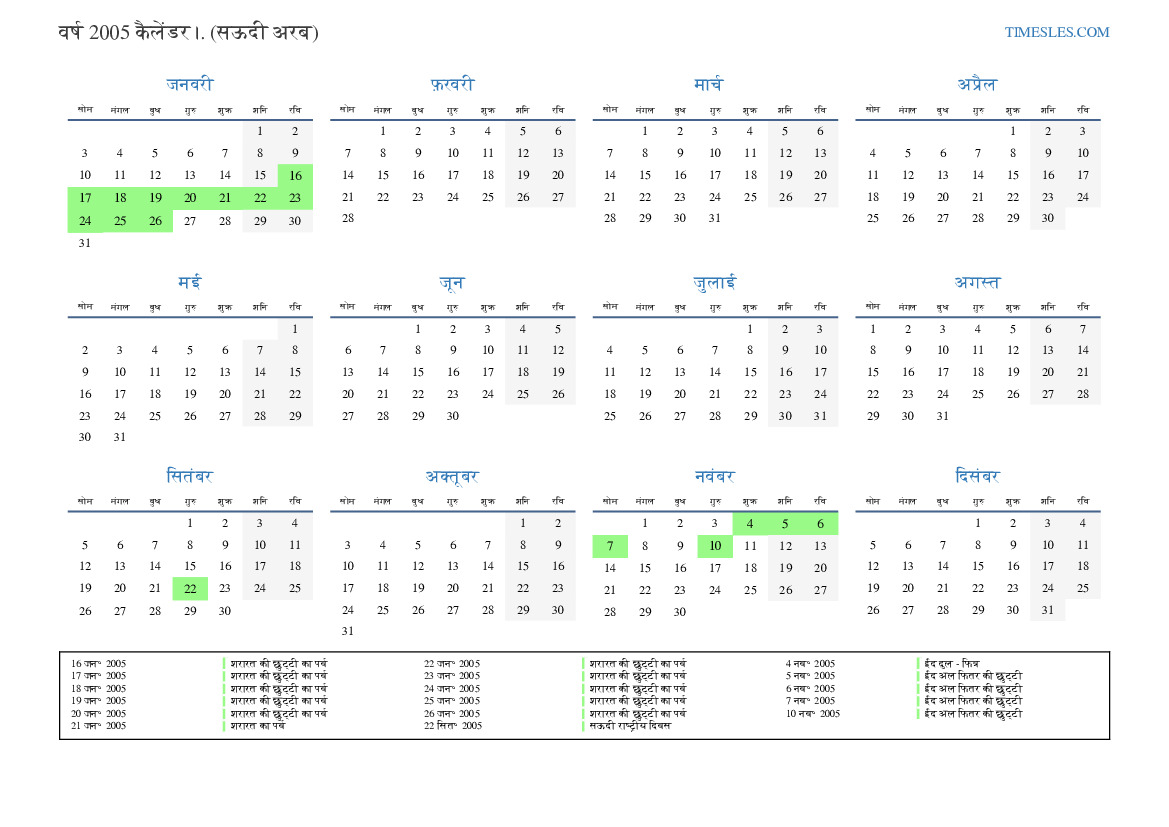 5 नव॰ 2005 ईद अल फितर की छुट्टी