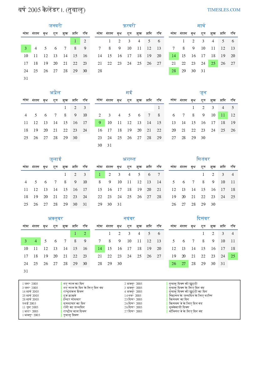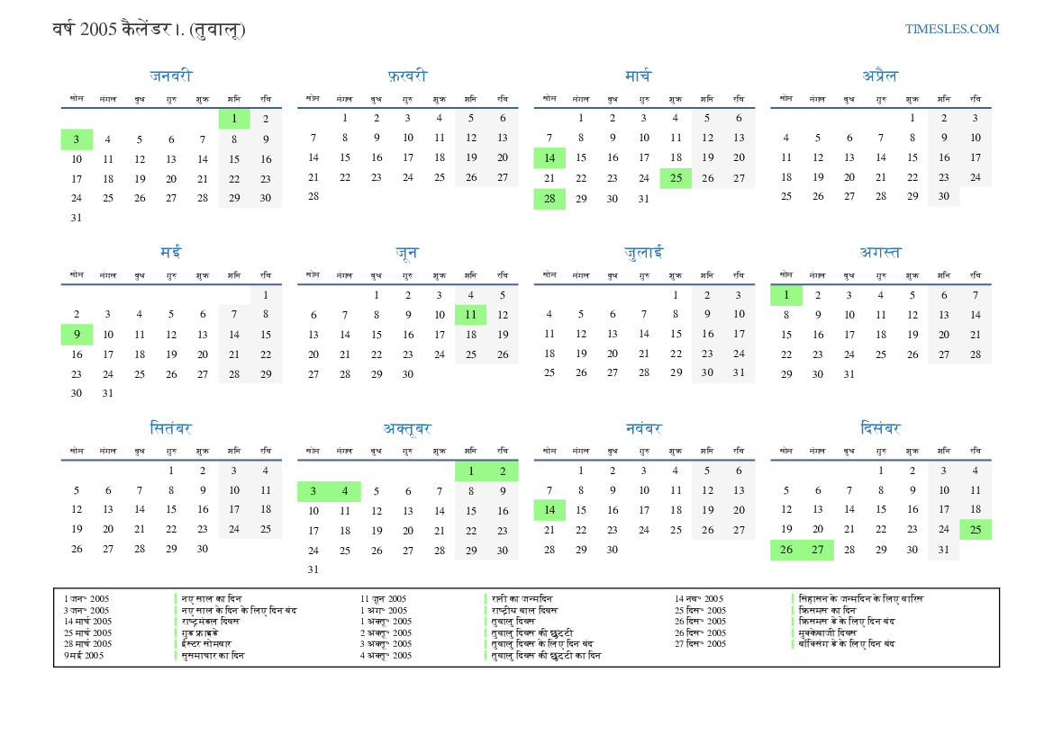 2 अक्तू॰ 2005 तुवालु दिवस की छुट्टी