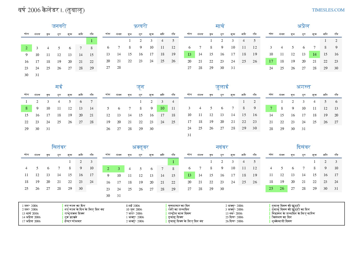 2 अक्तू॰ 2006 तुवालु दिवस की छुट्टी