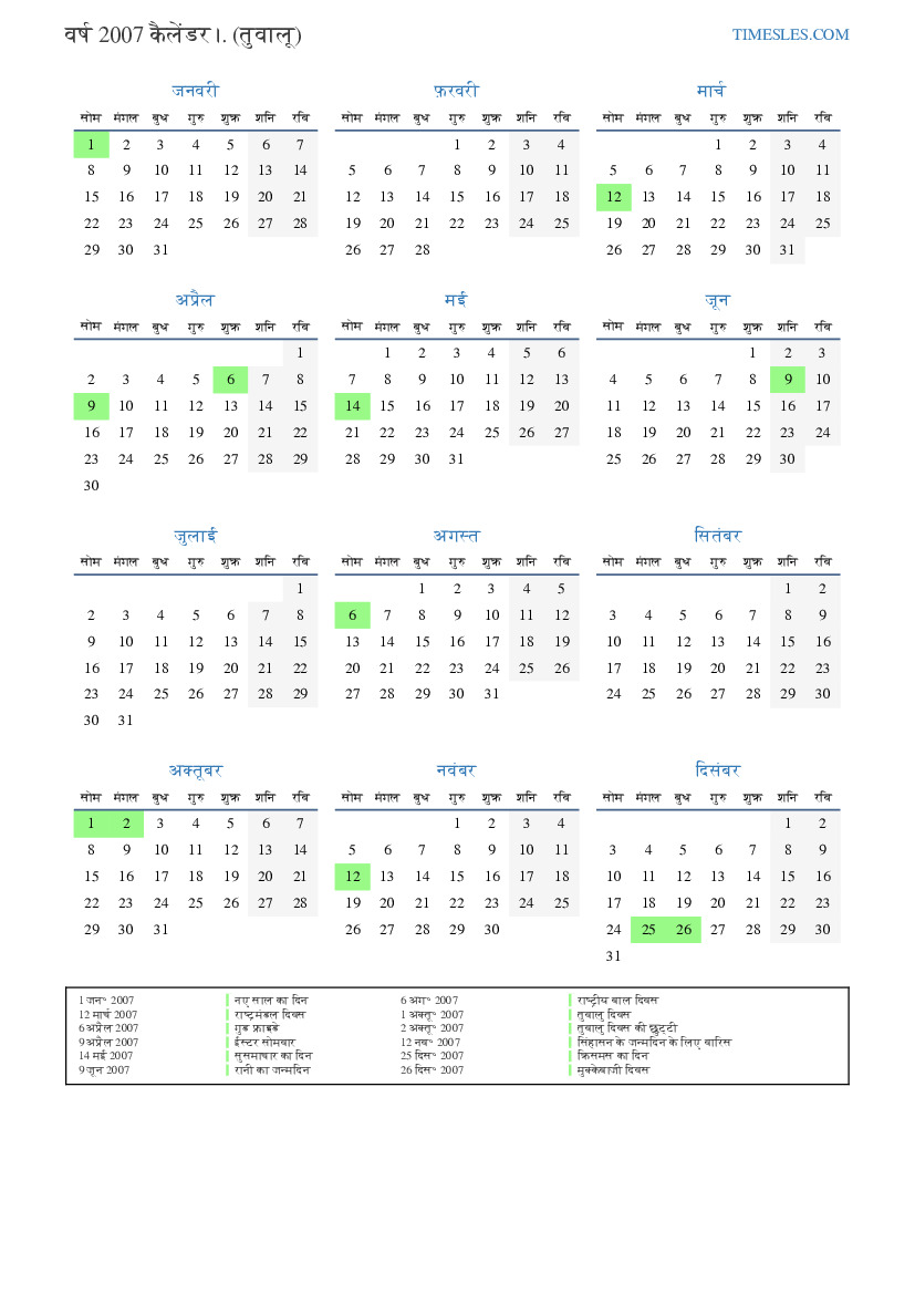 2 अक्तू॰ 2007 तुवालु दिवस की छुट्टी