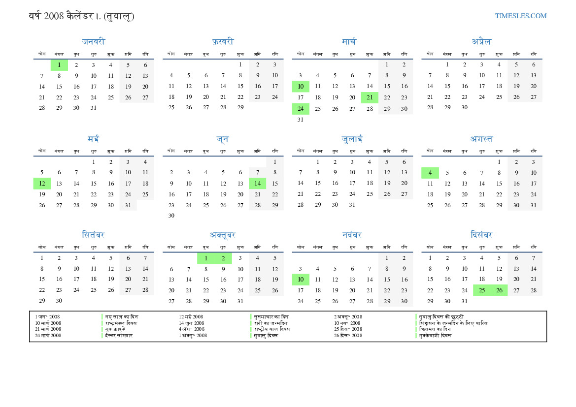 2 अक्तू॰ 2008 तुवालु दिवस की छुट्टी