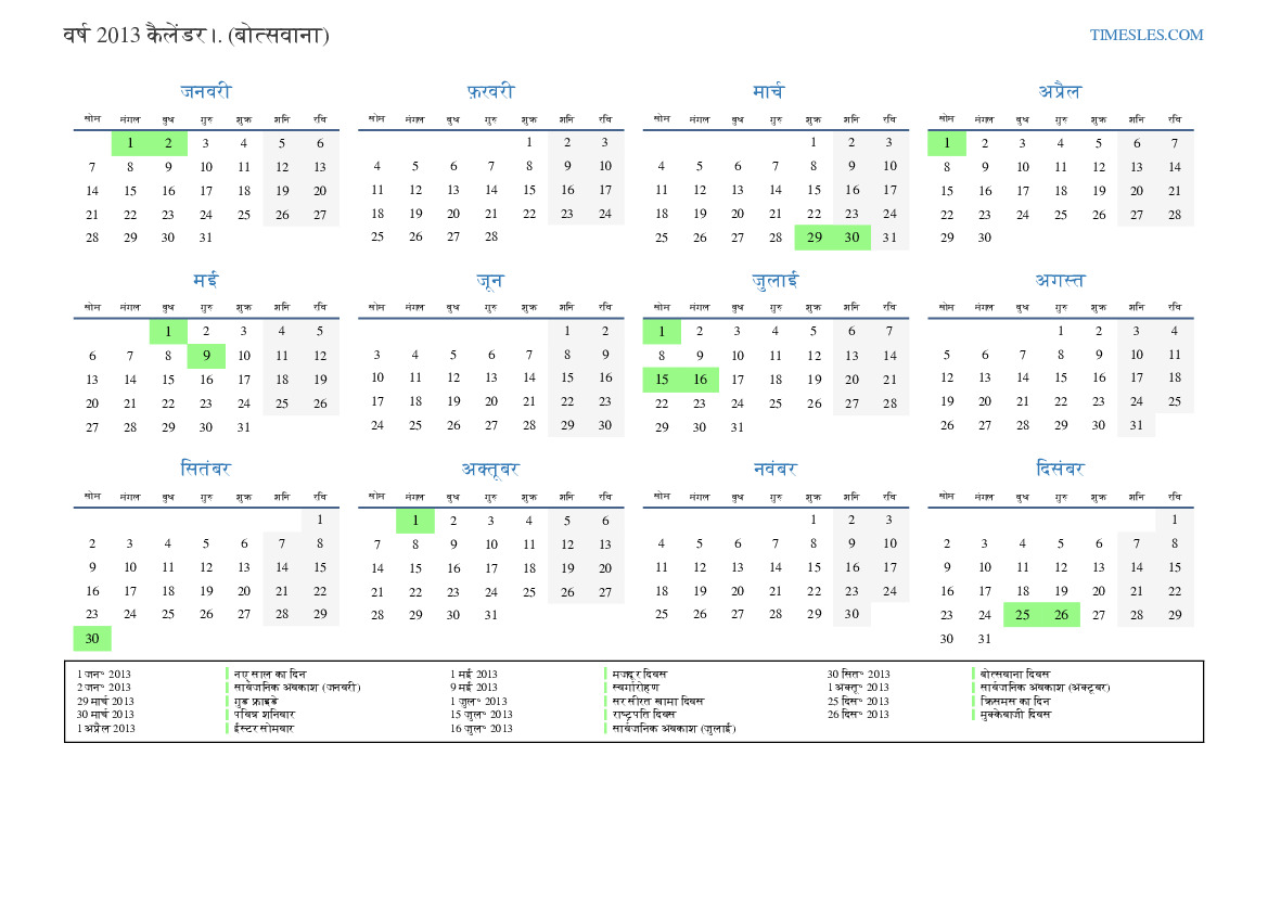 2 जन॰ 2013 सार्वजनिक अवकाश (जनवरी)