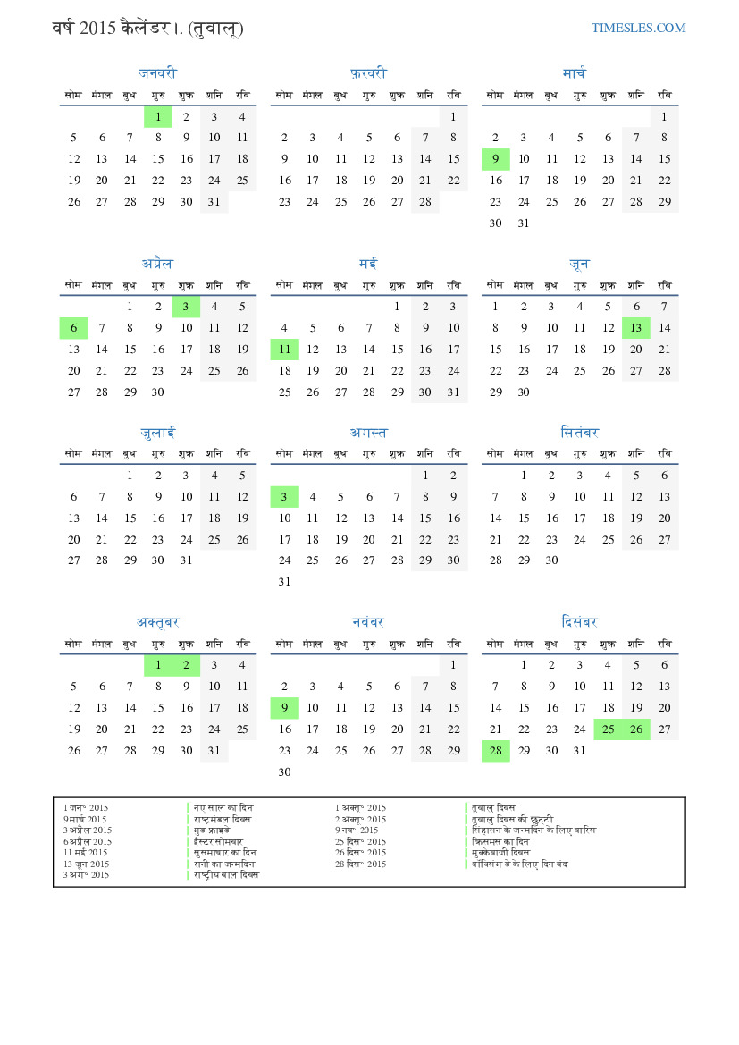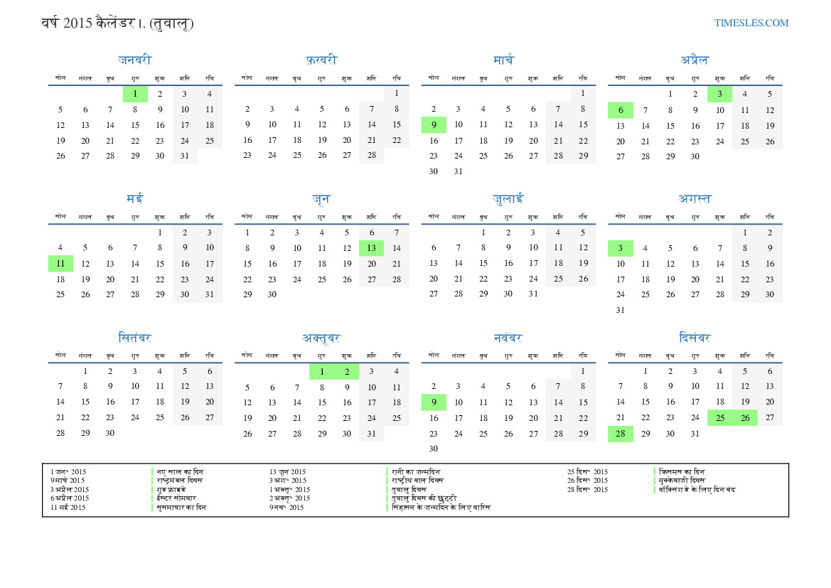 2 अक्तू॰ 2015 तुवालु दिवस की छुट्टी