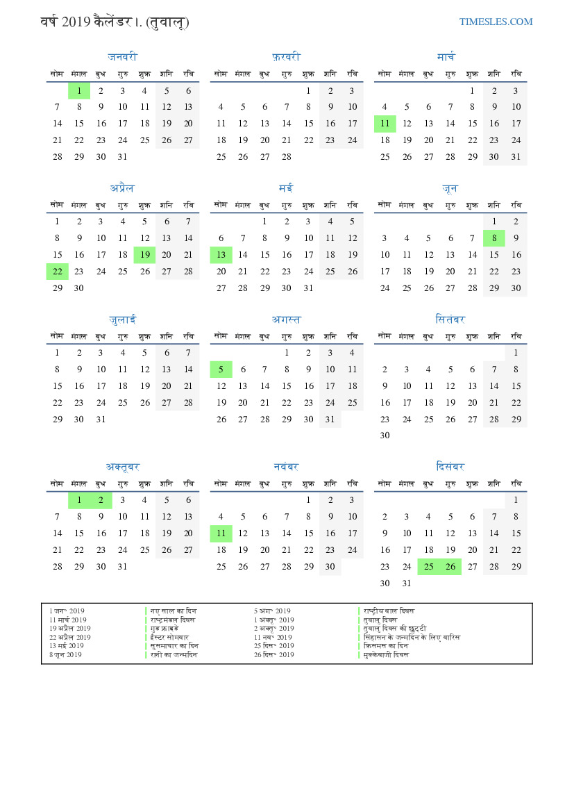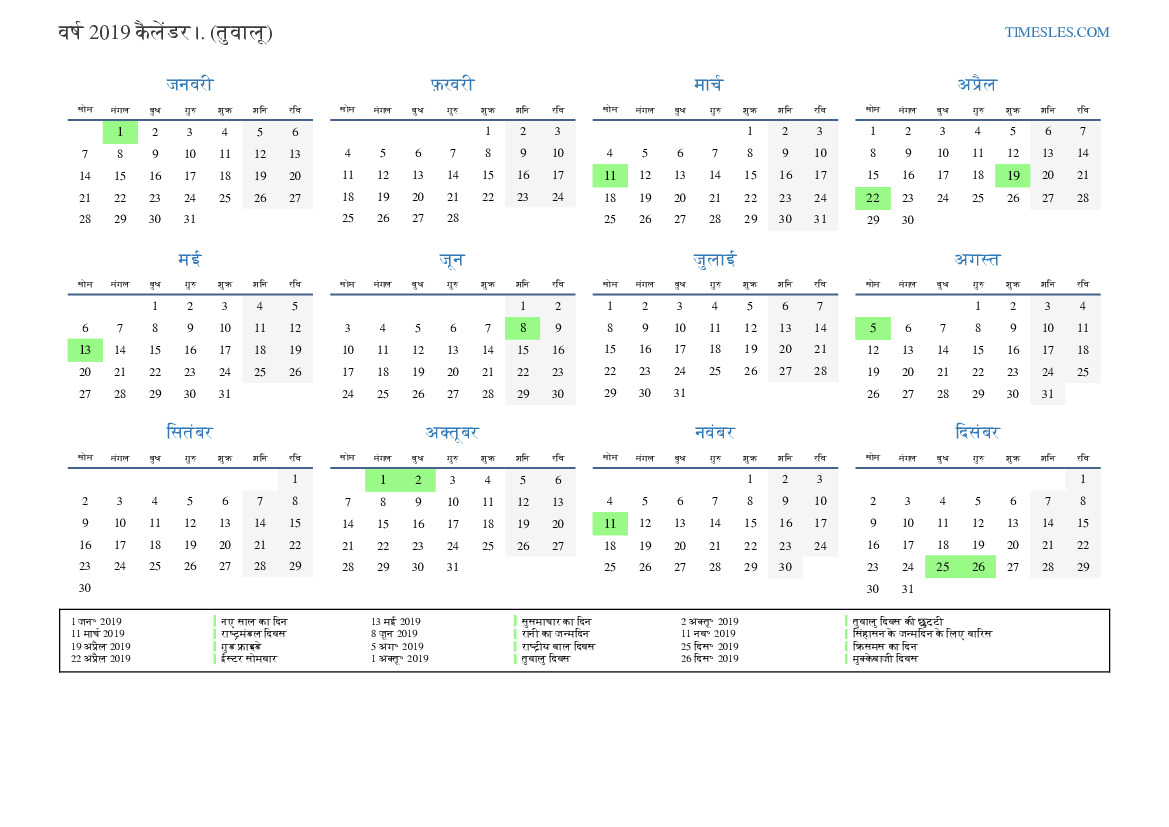 2 अक्तू॰ 2019 तुवालु दिवस की छुट्टी
