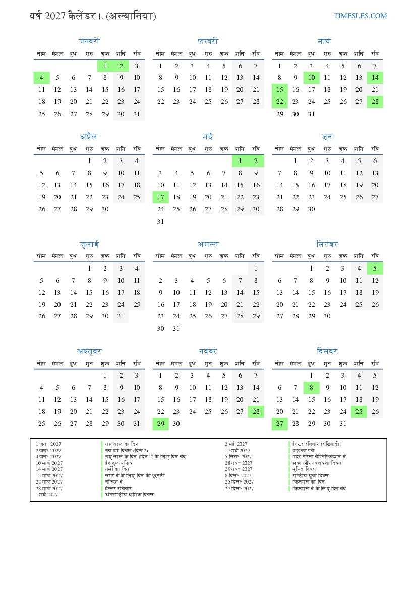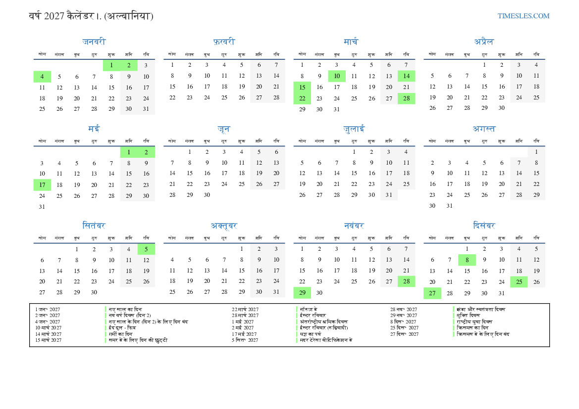 15 मार्च 2027 समर डे के लिए दिन की छुट्टी