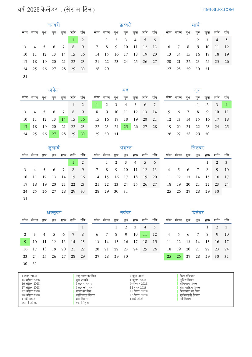 11 नव॰ 2028 संत मार्टिन दिवस