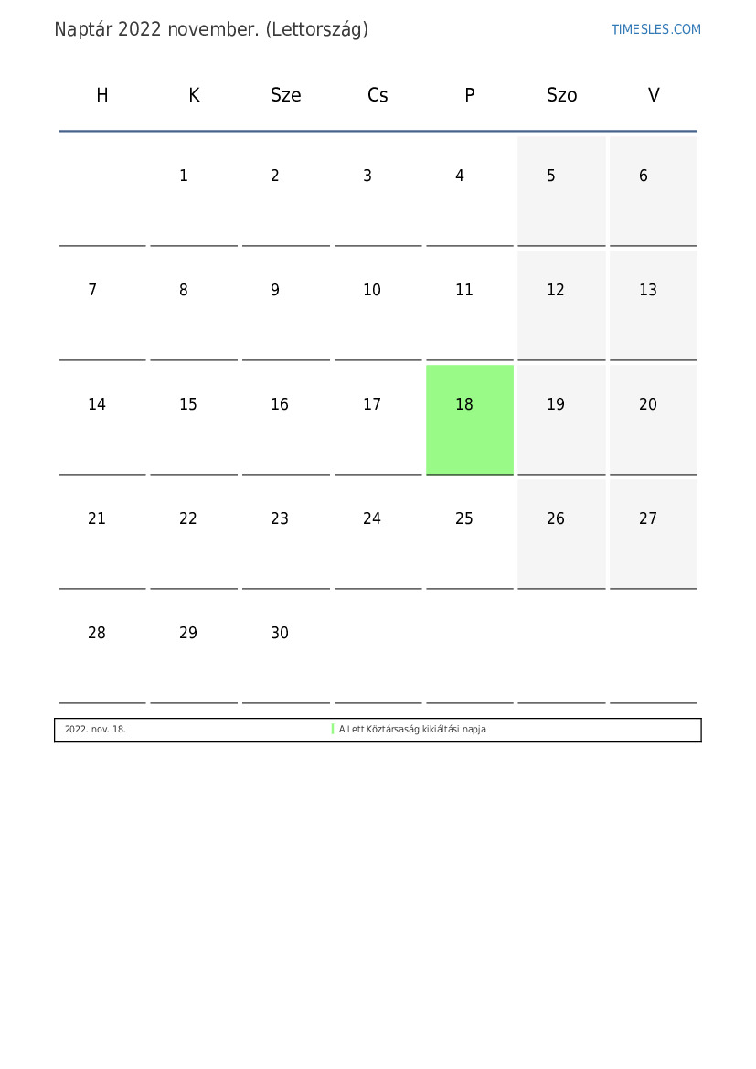 2022. november Lettország számára naptára