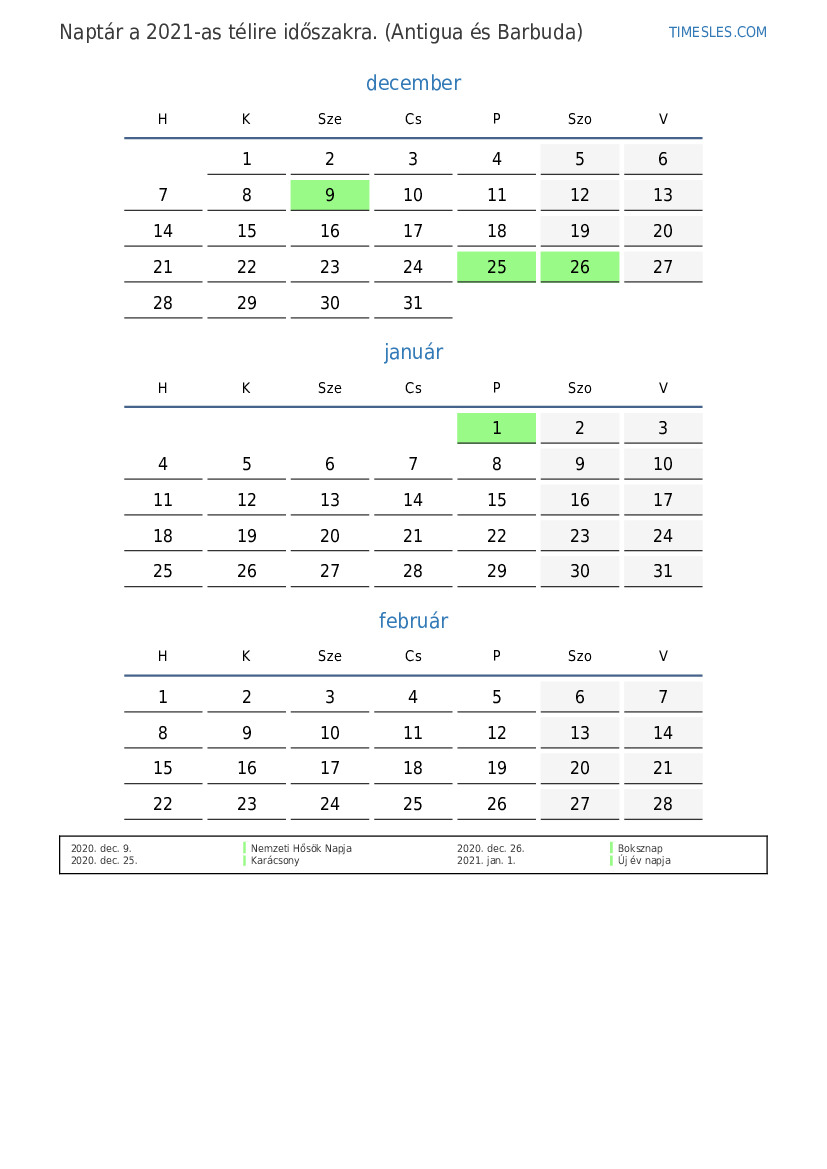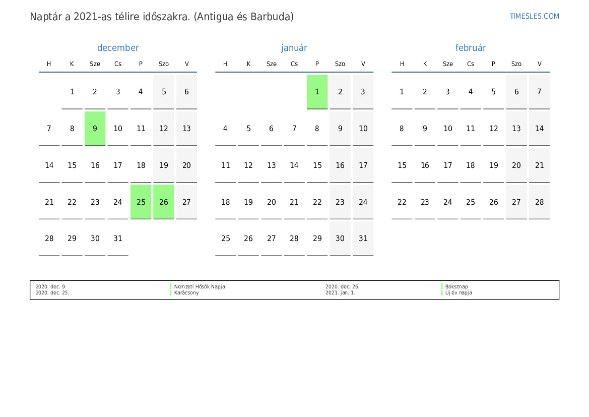 Ünnepnapok és hétvégék 2021 őszre Antigua és Barbuda számára