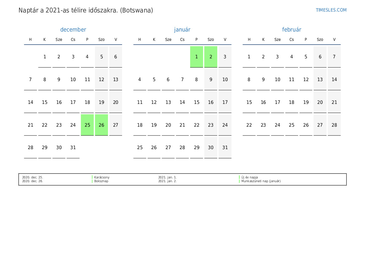 Ünnepnapok és hétvégék 2021 tavaszra Botswanának