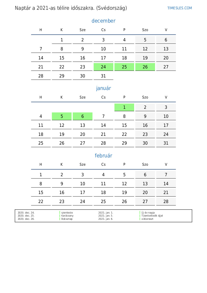 Ünnepnapok és hétvégék 2021 nyárra Svédország számára