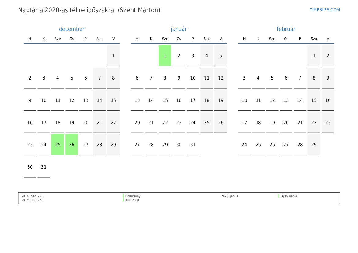 Töltse le és nyomtassa ki az ünnepnapokkal és hétvégékkel ellátott PDF naptárat Sint Maartennek 2020 télire