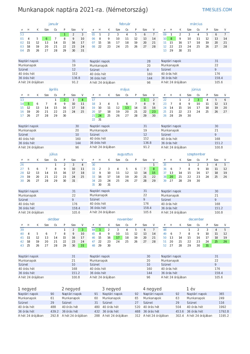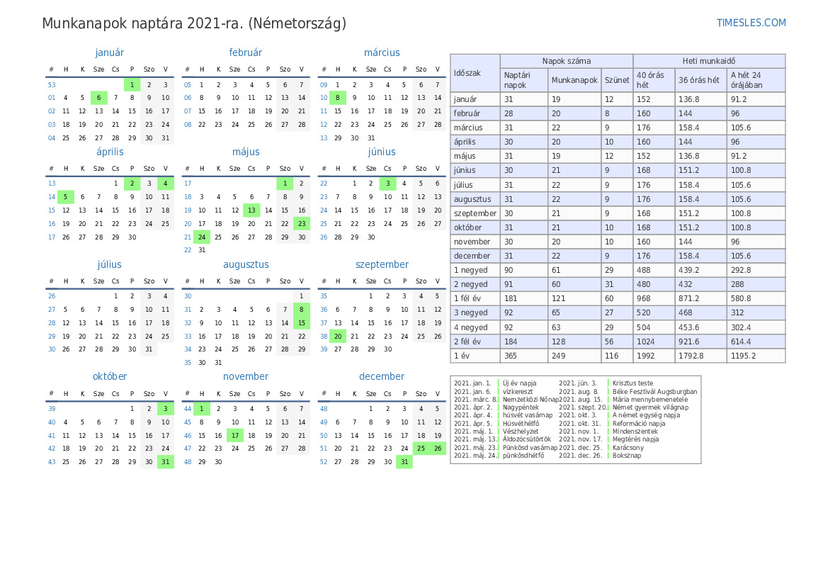 Munkanapok 2021 február Németország számára