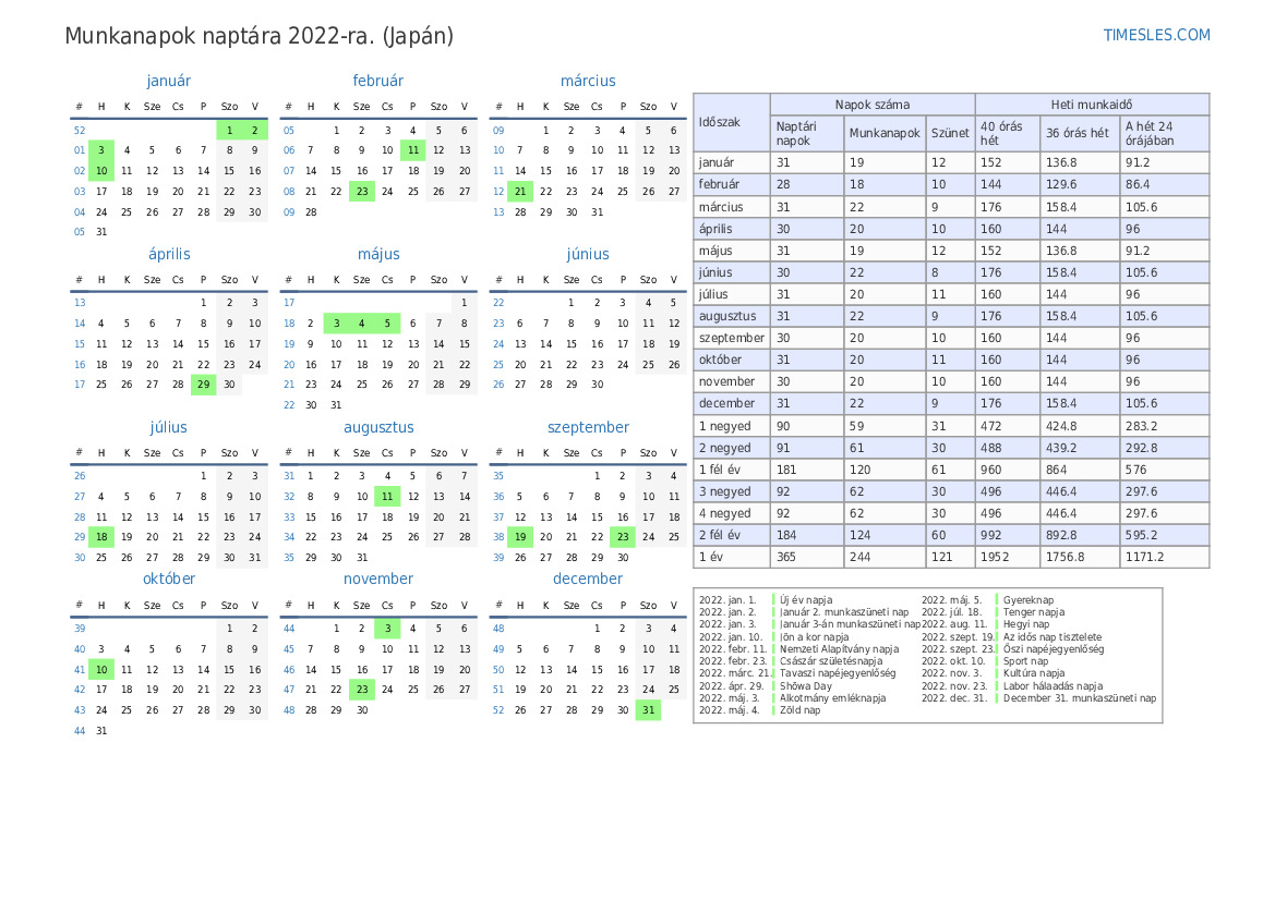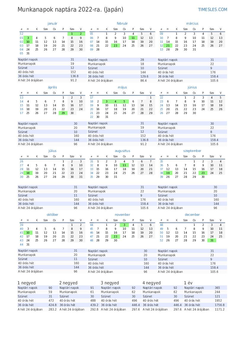 Töltse le és nyomtassa ki a 2022 október PDF-munkanapokat Japán számára