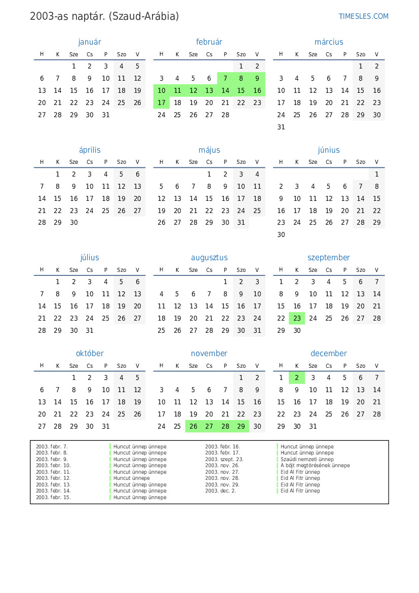 2003. nov. 30. Eid al-Fitr Holiday (csak az állami szektorban)