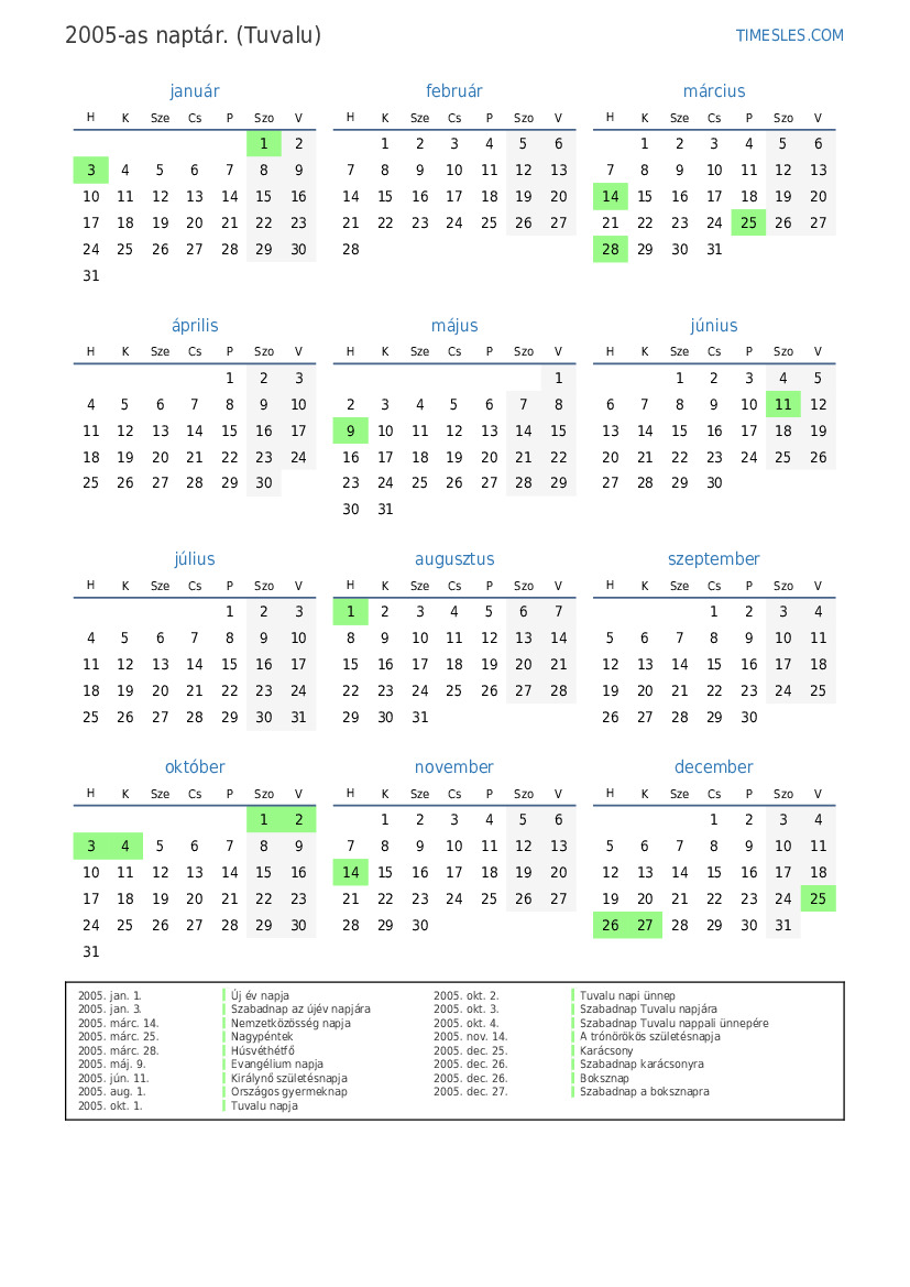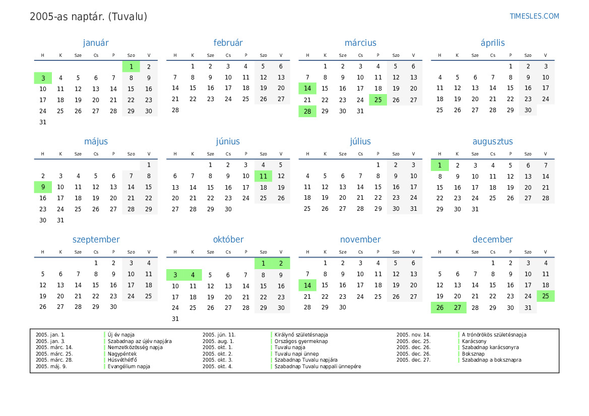 2005. okt. 4. Szabadnap Tuvalu nappali ünnepére