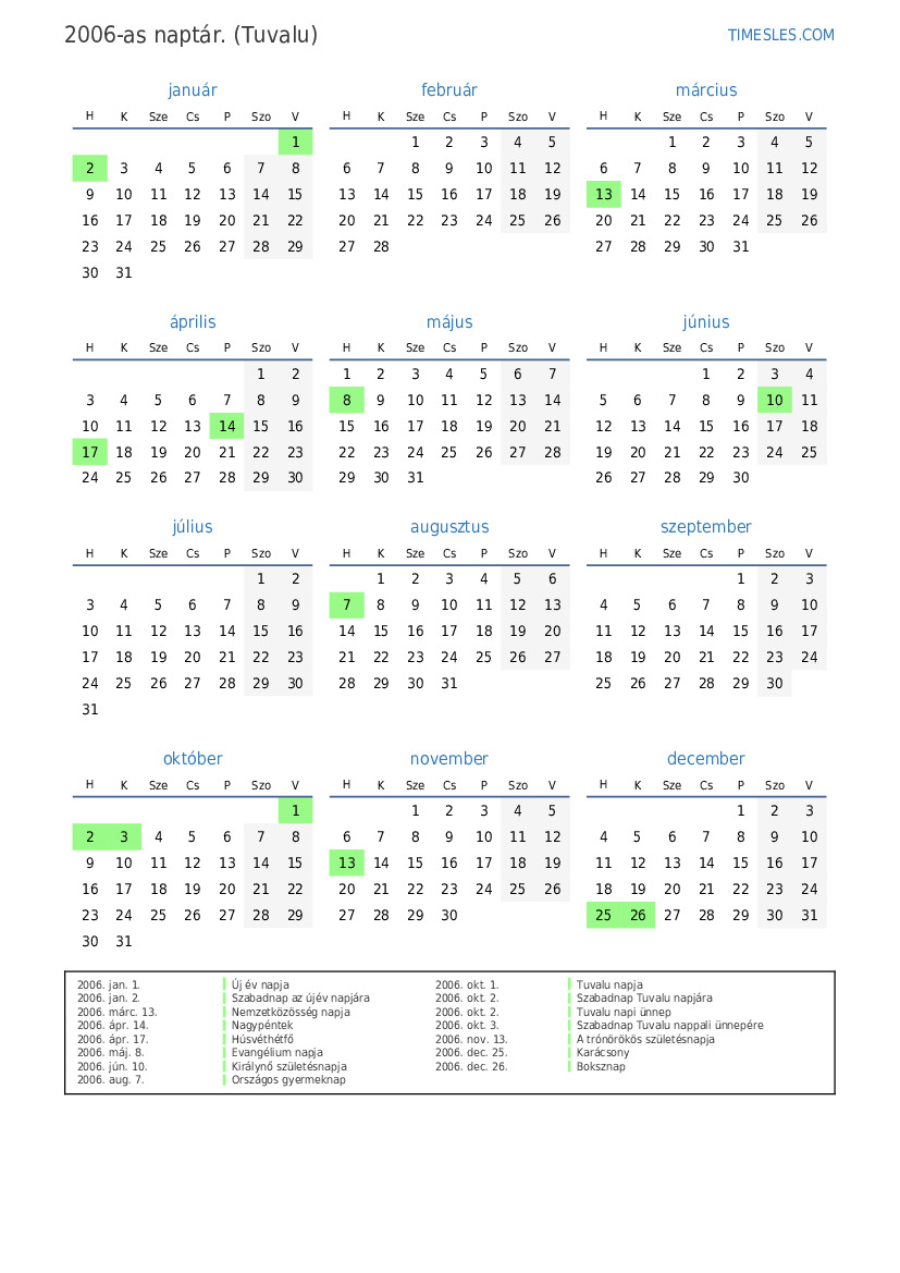 2006. okt. 3. Szabadnap Tuvalu nappali ünnepére