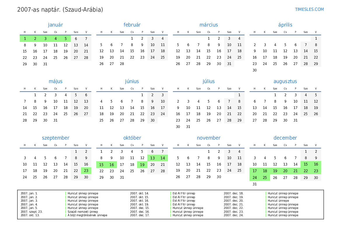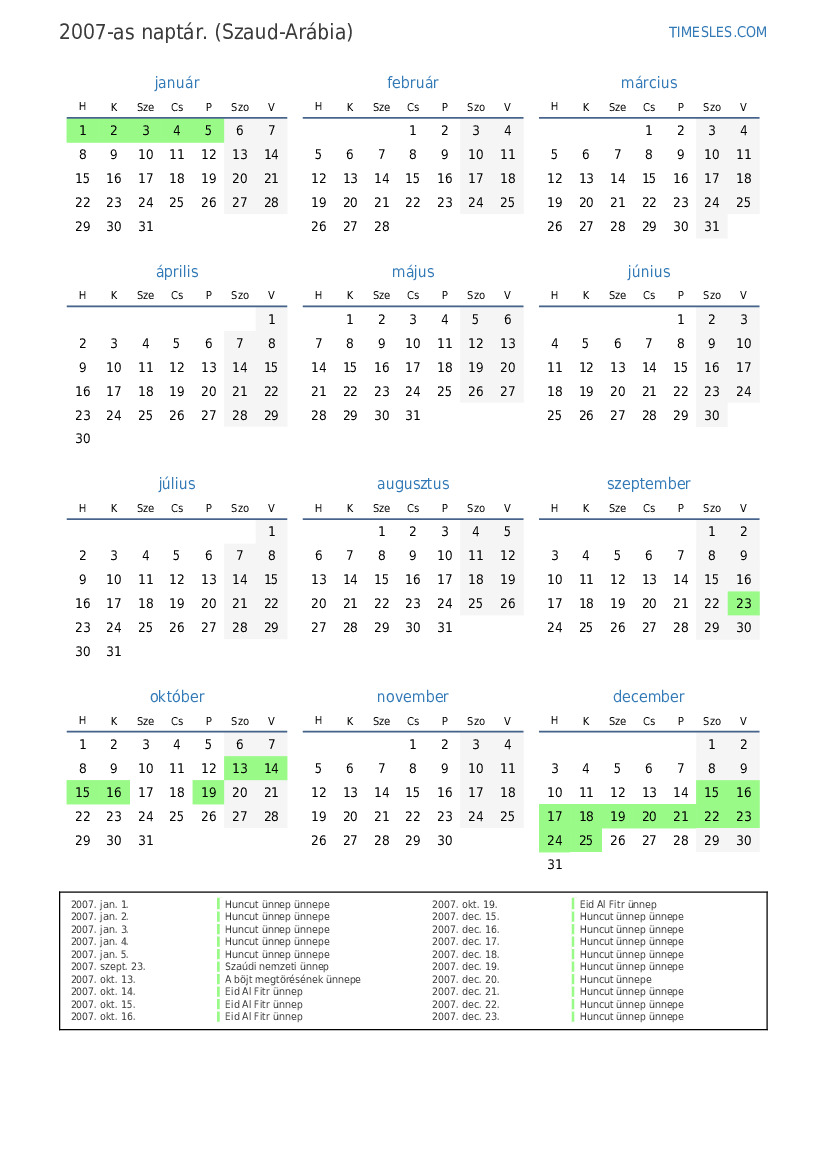 2007. okt. 18. Eid al-Fitr Holiday (csak az állami szektorban)